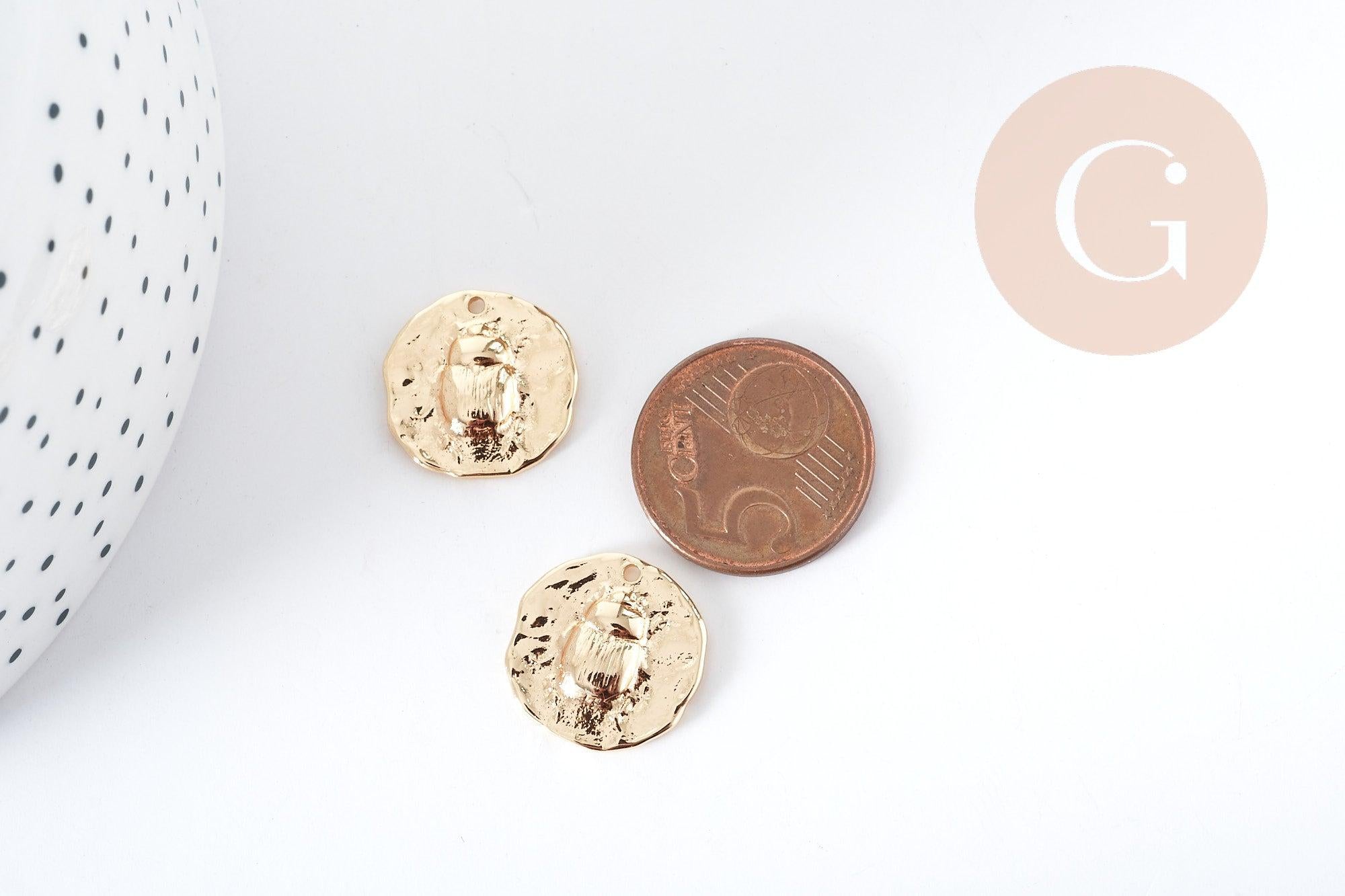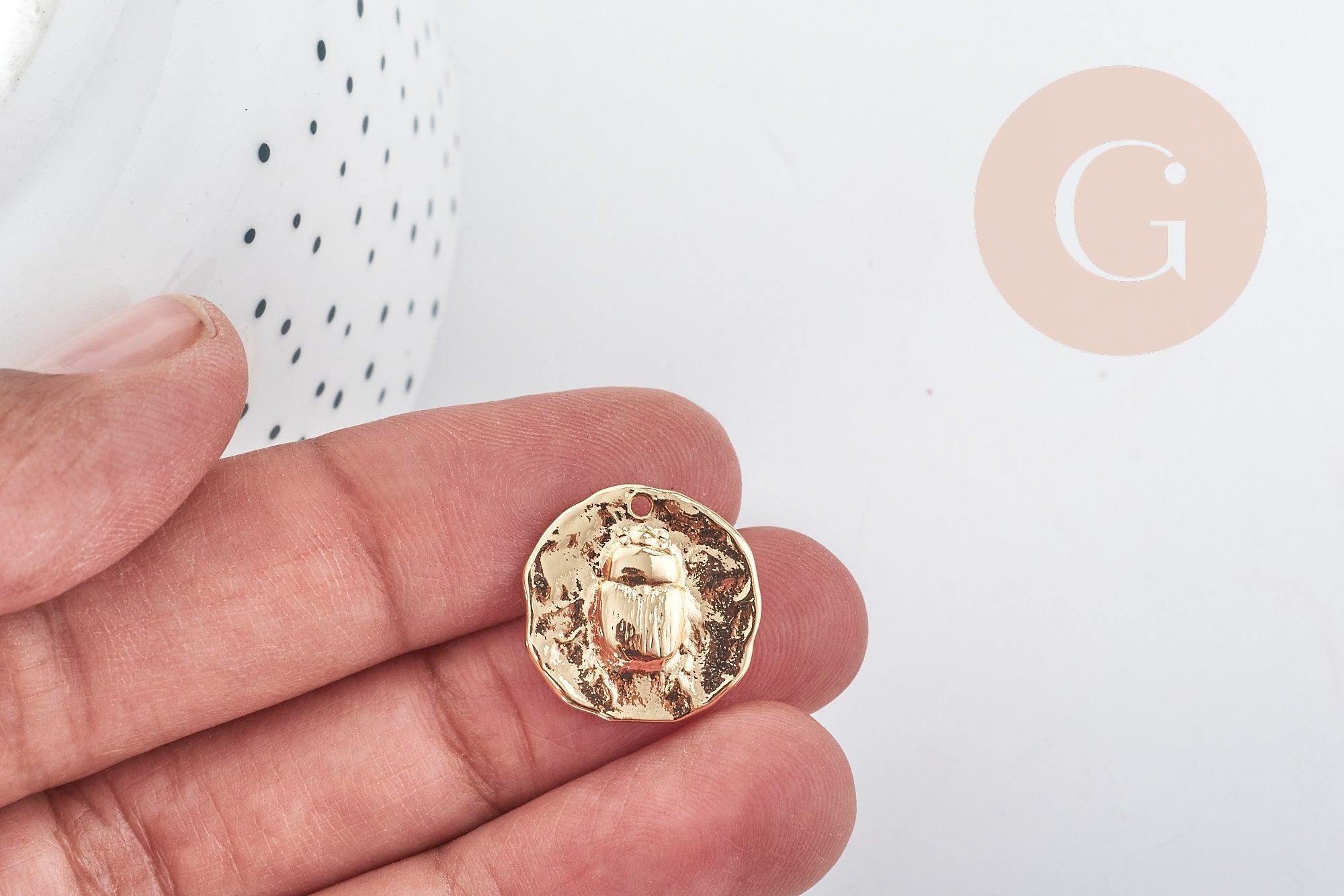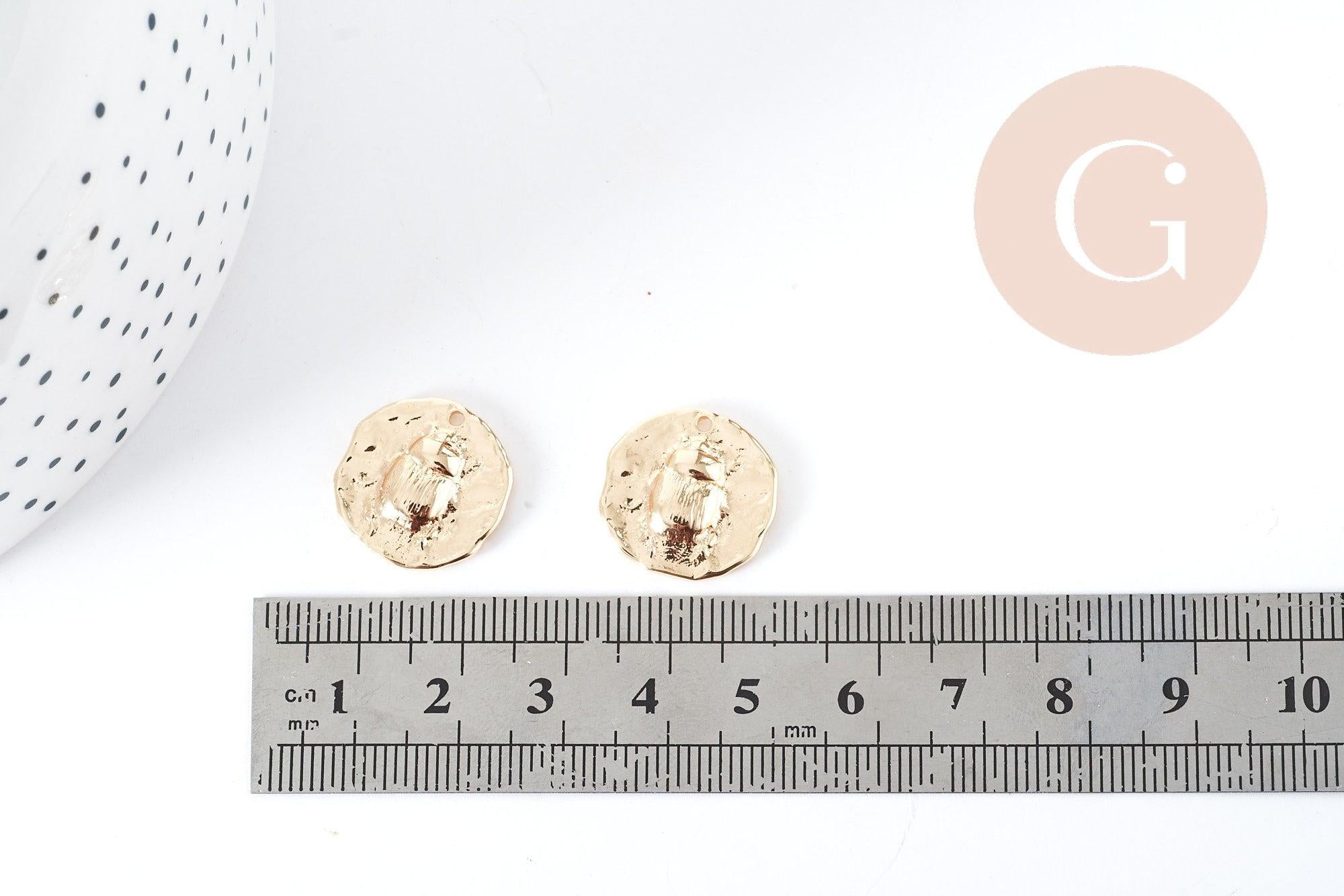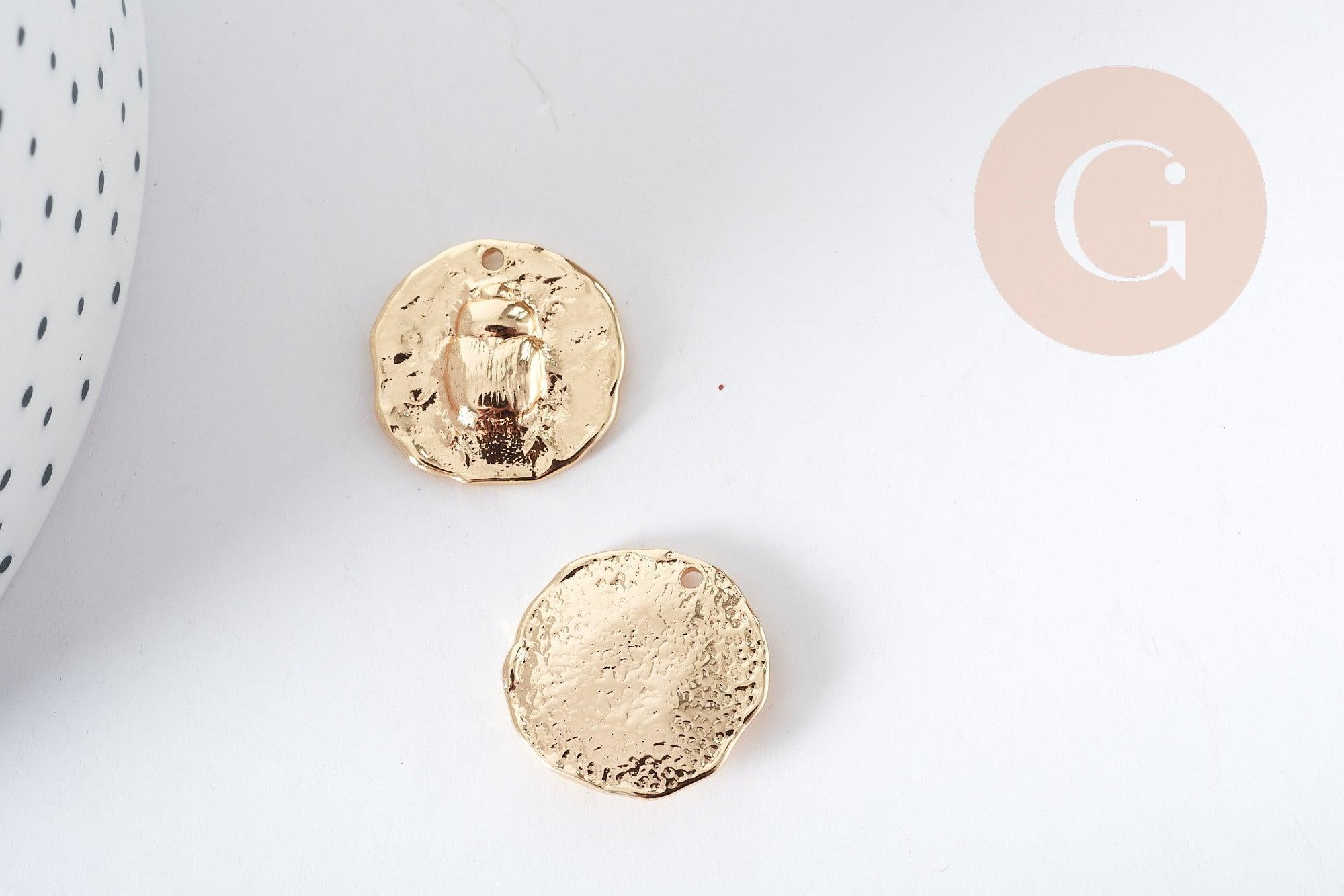 Médaille Ronde Scarabée laiton doré 18K 17mm, création bijoux chance x1 G9020