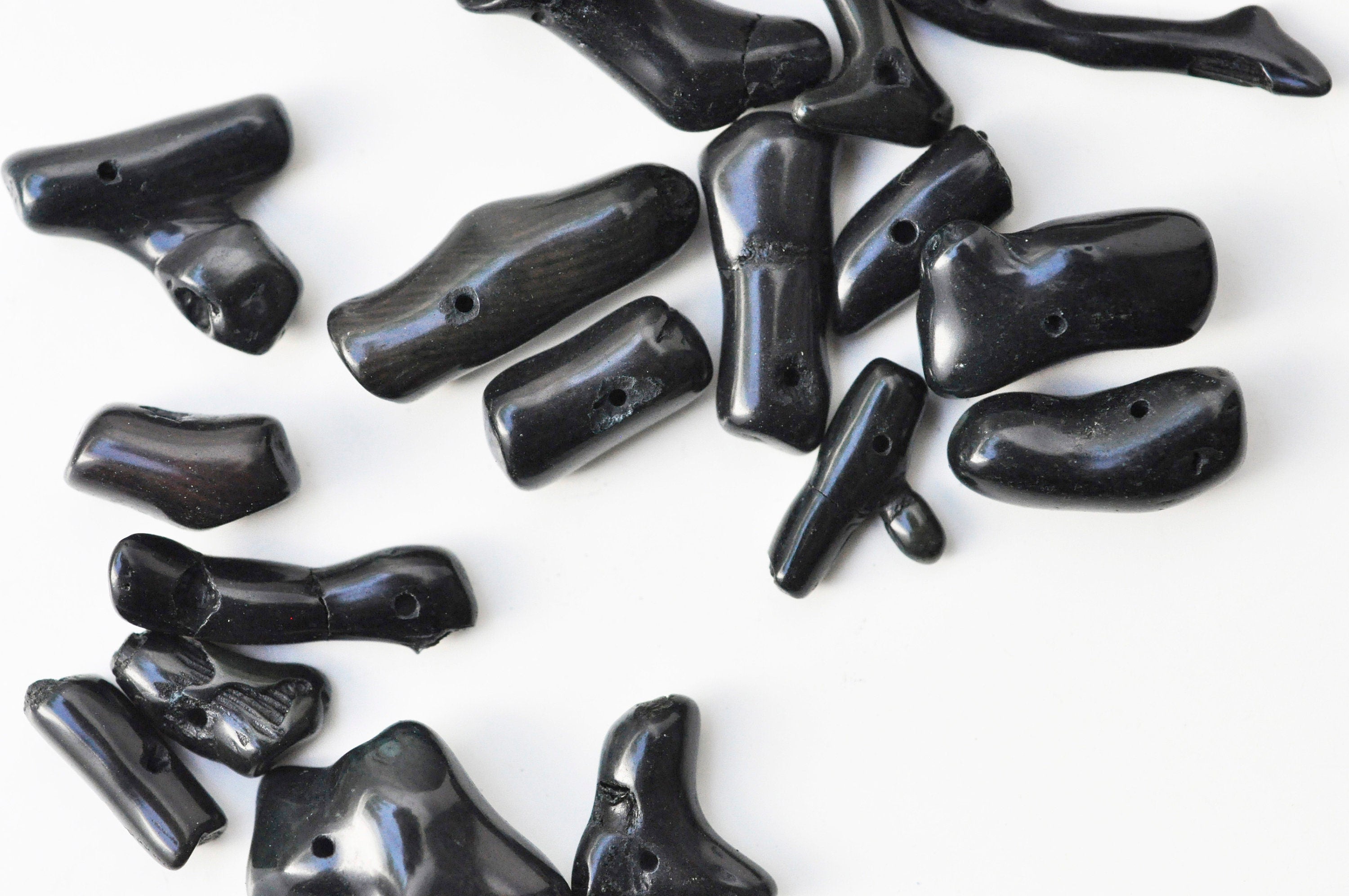 Cuenta de rama de coral negro perforada, cuentas de coral natural para crear conchas y joyas de coral natural, 15-25 mm, juego de 10 Gran cuenta de coral natural teñida de negro. Completarán perfectamente un collar, decorarán un colgante o...