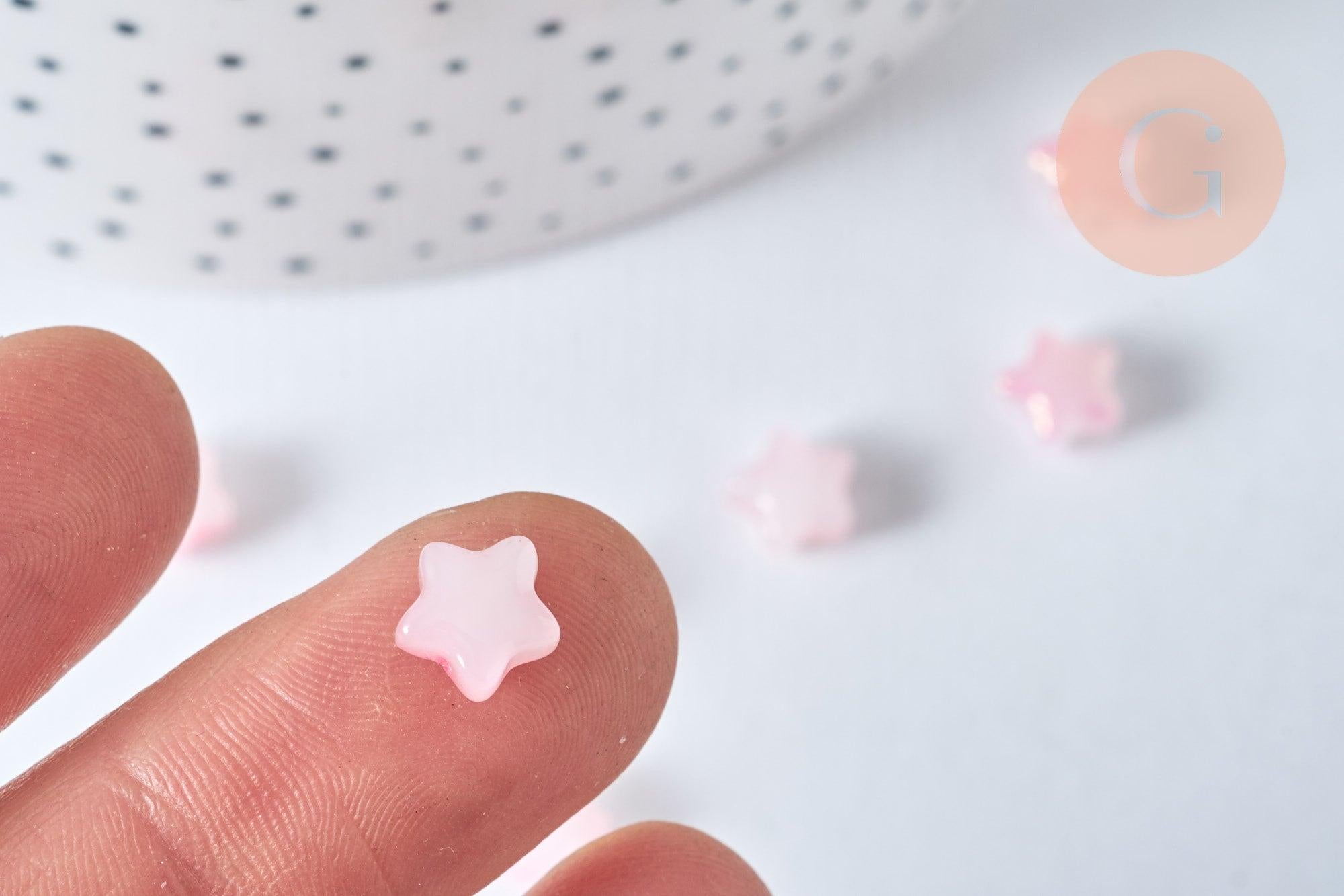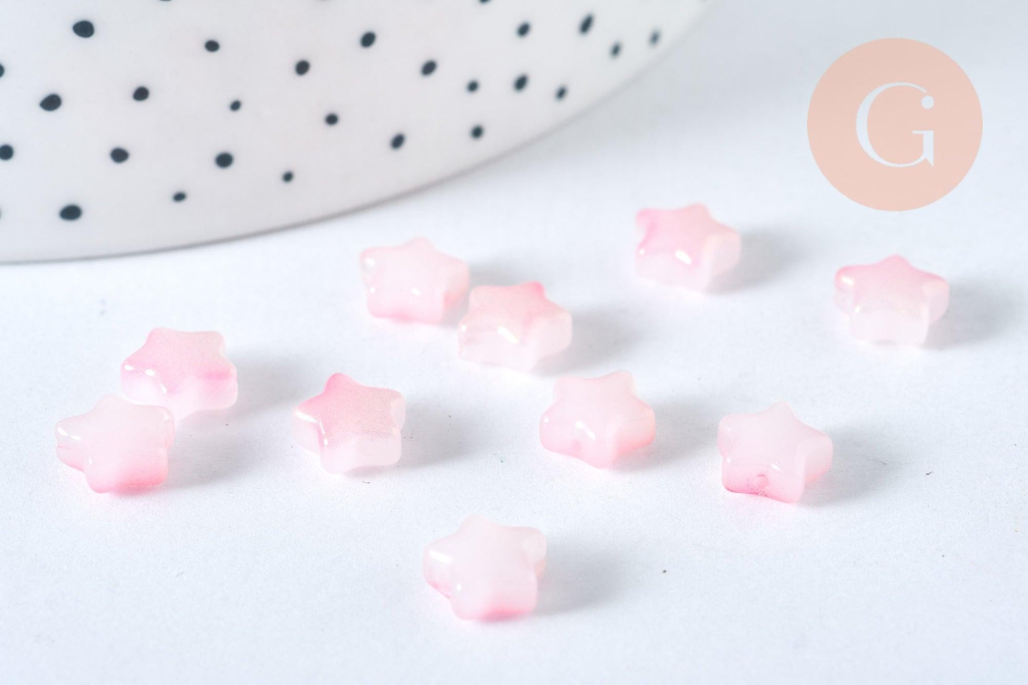 Cuentas de vidrio en forma de estrella y polvo brillante de color rosa lechoso, cuentas de vidrio para hacer tú mismo, 8 mm, x10 (G6822)