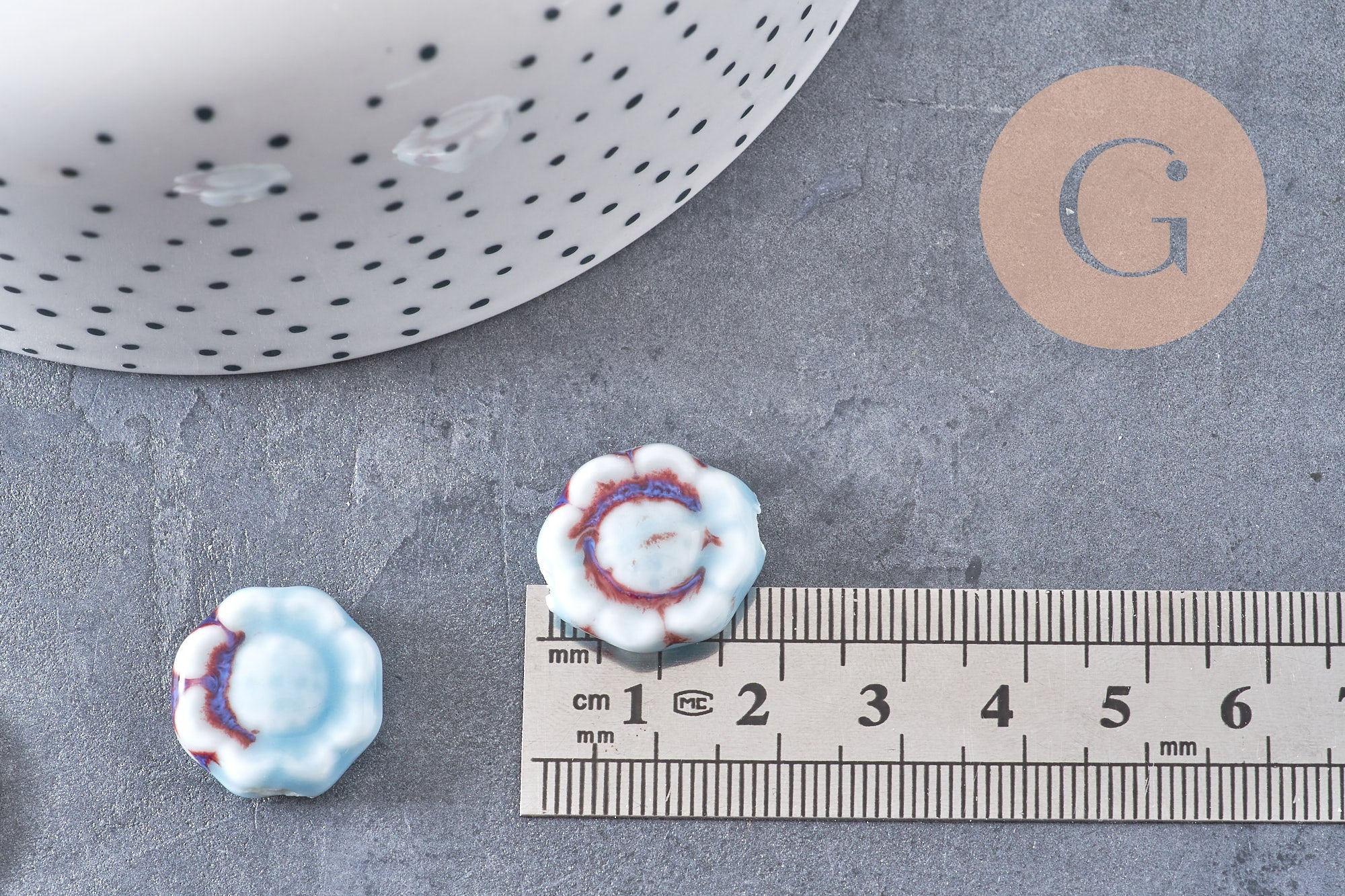 Dale un toque delicado y artesanal a tus creaciones con estas cuentas de flores de porcelana hechas a mano . Su forma de girasol y su hermoso color azul claro aportan frescura y originalidad a tus joyas DIY.