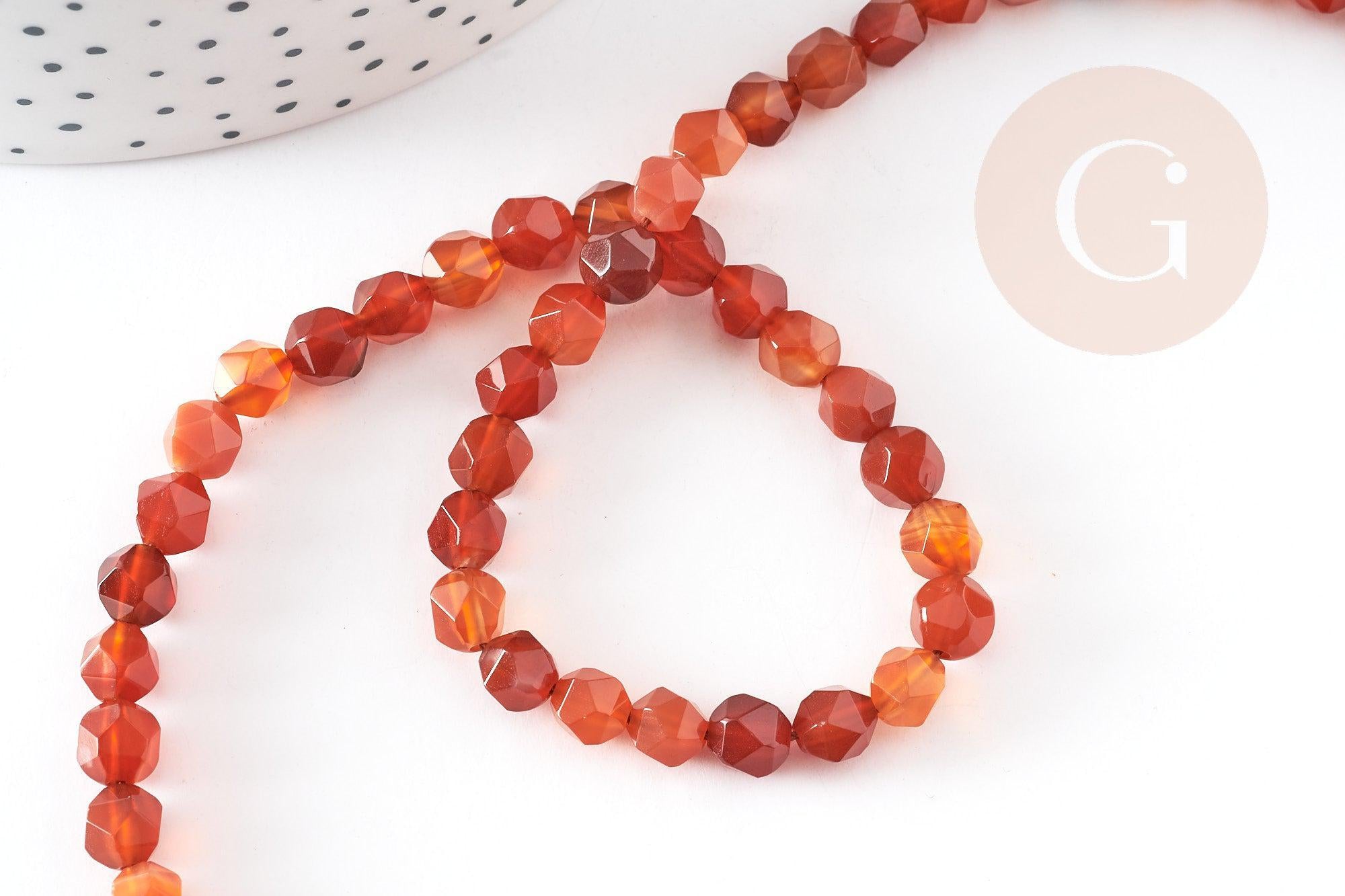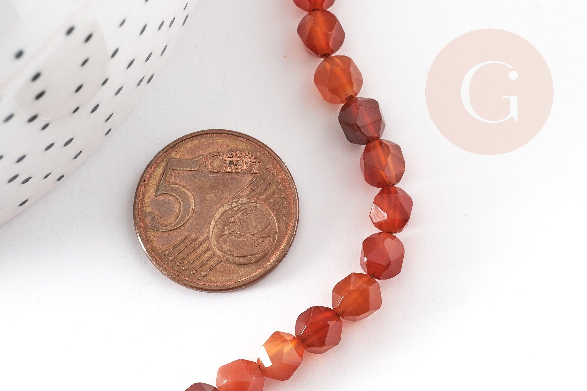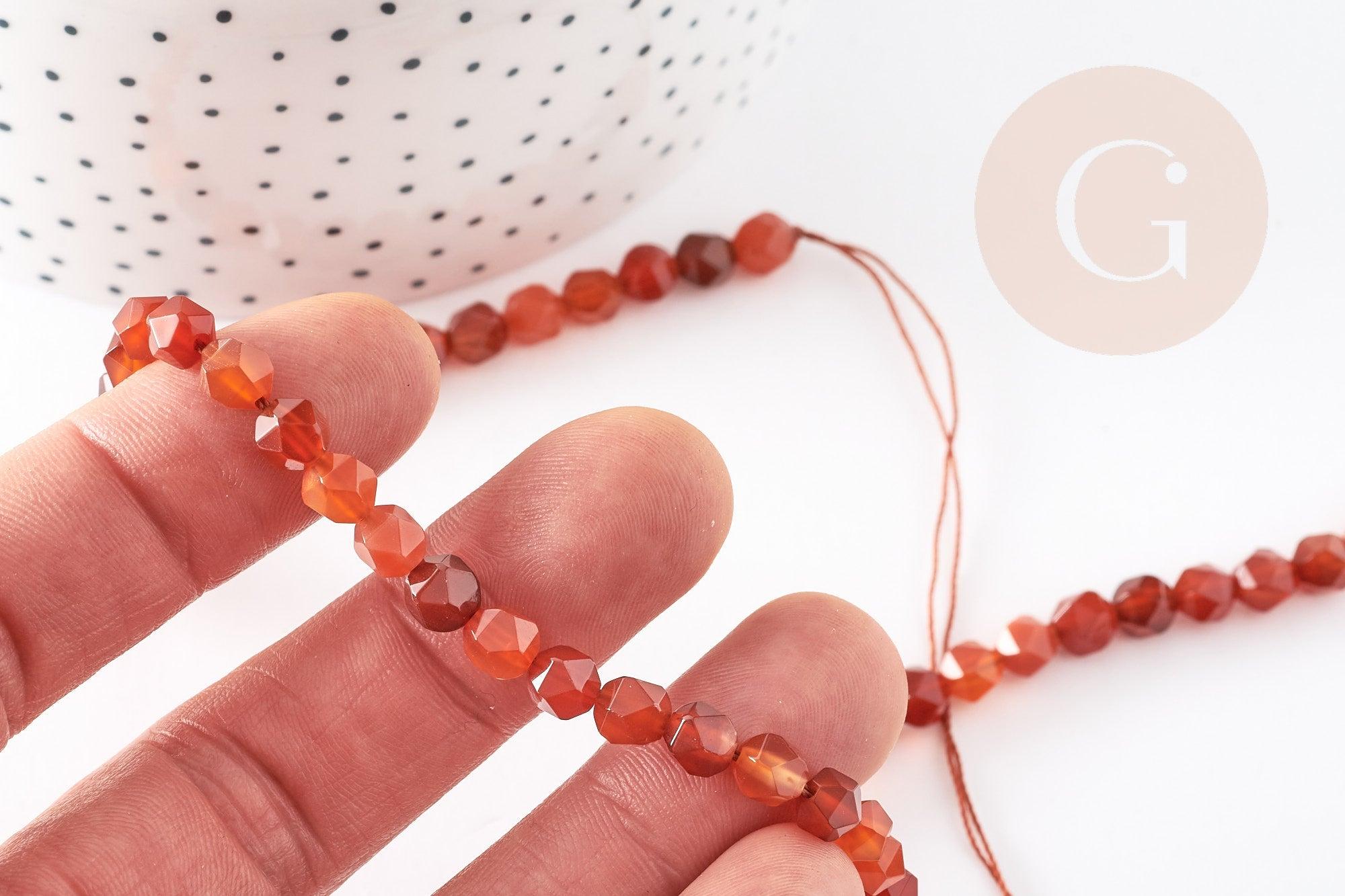 Cuentas hexagonales de cornalina natural, piedra natural, 6-7 mm, tira de 38 cm, x1 (G4371)