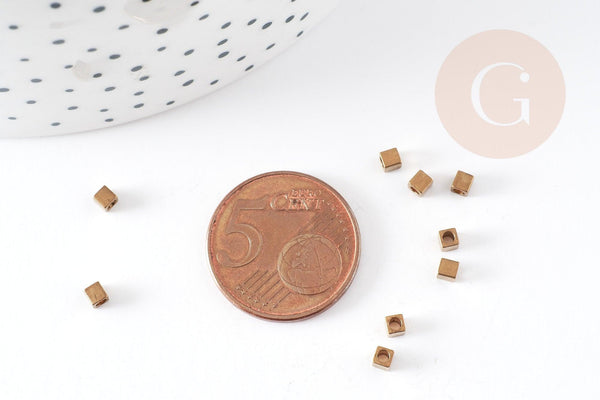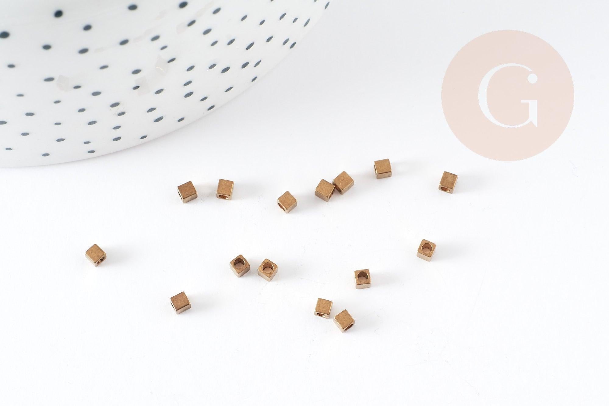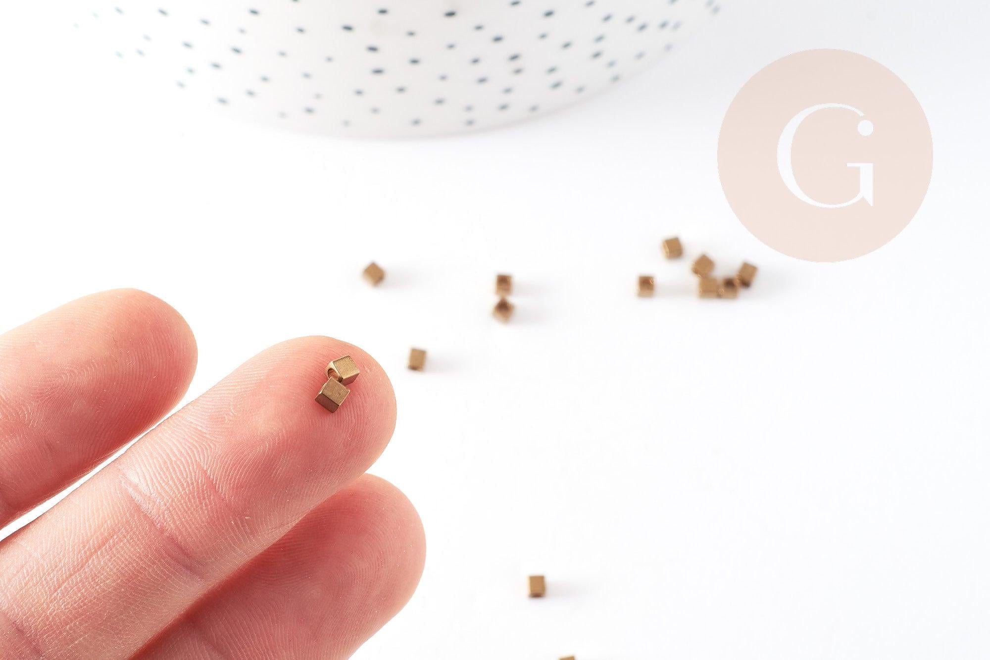 Cuenta espaciadora cuadrada de latón crudo, suministros creativos, cuentas de latón, cuentas doradas, latón crudo, 2,5 mm, x100 (7,3 g) G0082