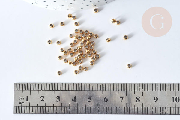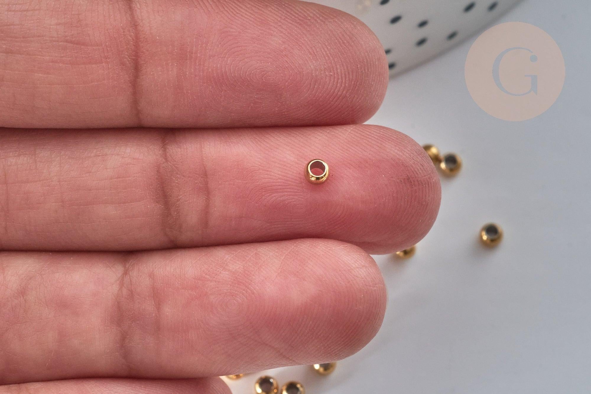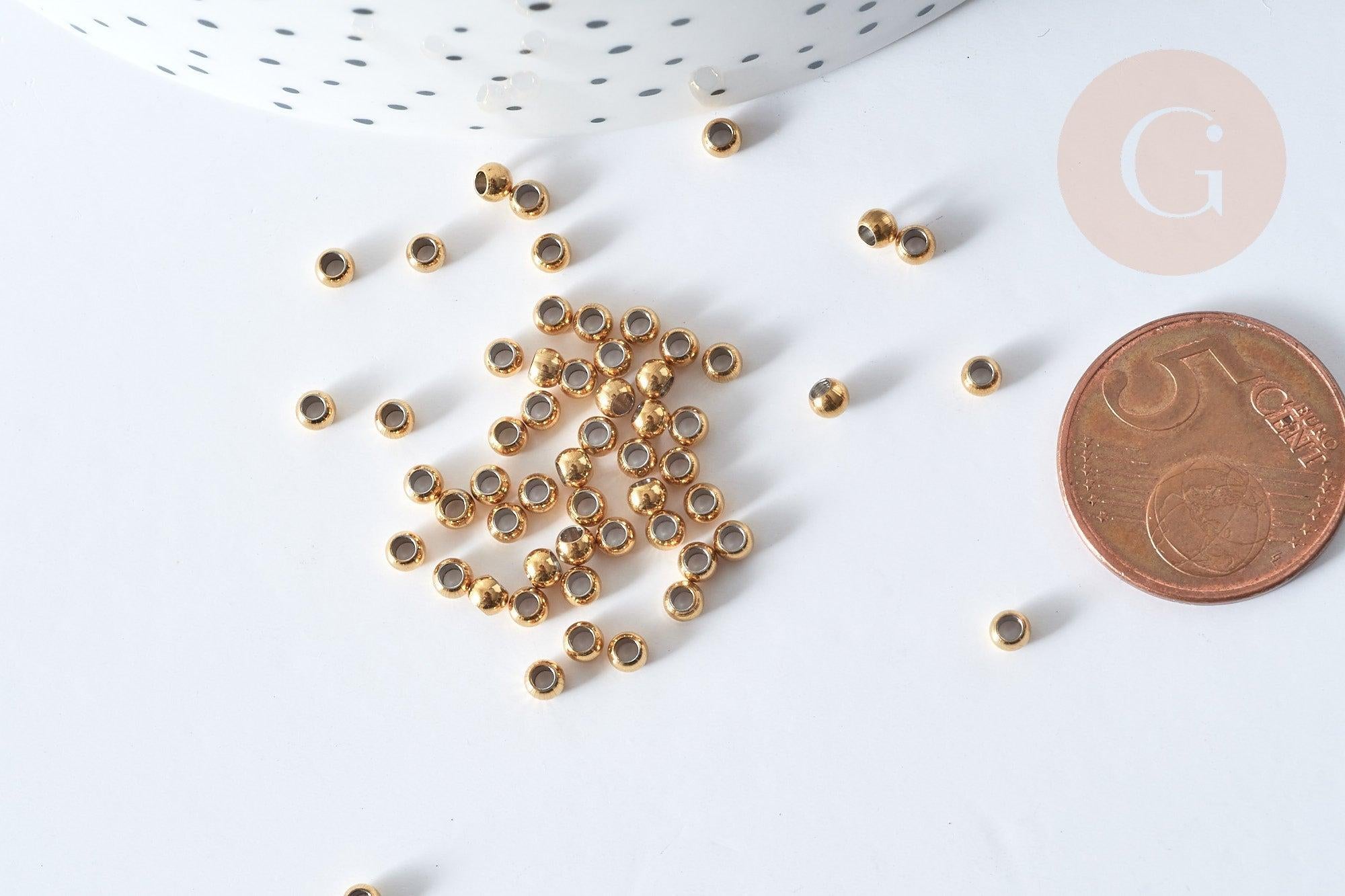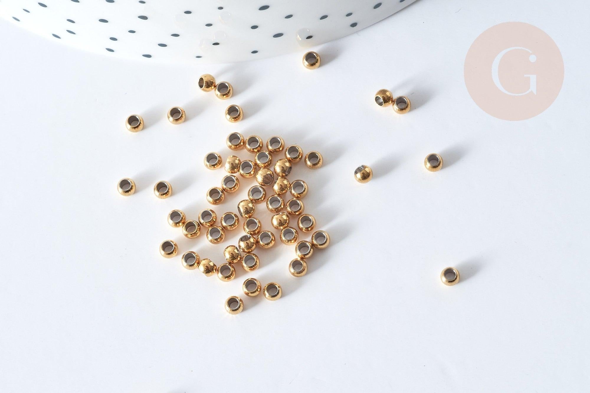 Siempre disponemos de cuentas espaciadoras de 3 mm en la creación de bisutería DIY . Son de acero inoxidable dorado liso y brillante.