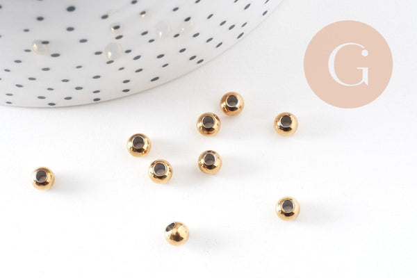 Perle intercalaire ronde acier inoxydable IP 304 doré 4mm, x10 (G10906)