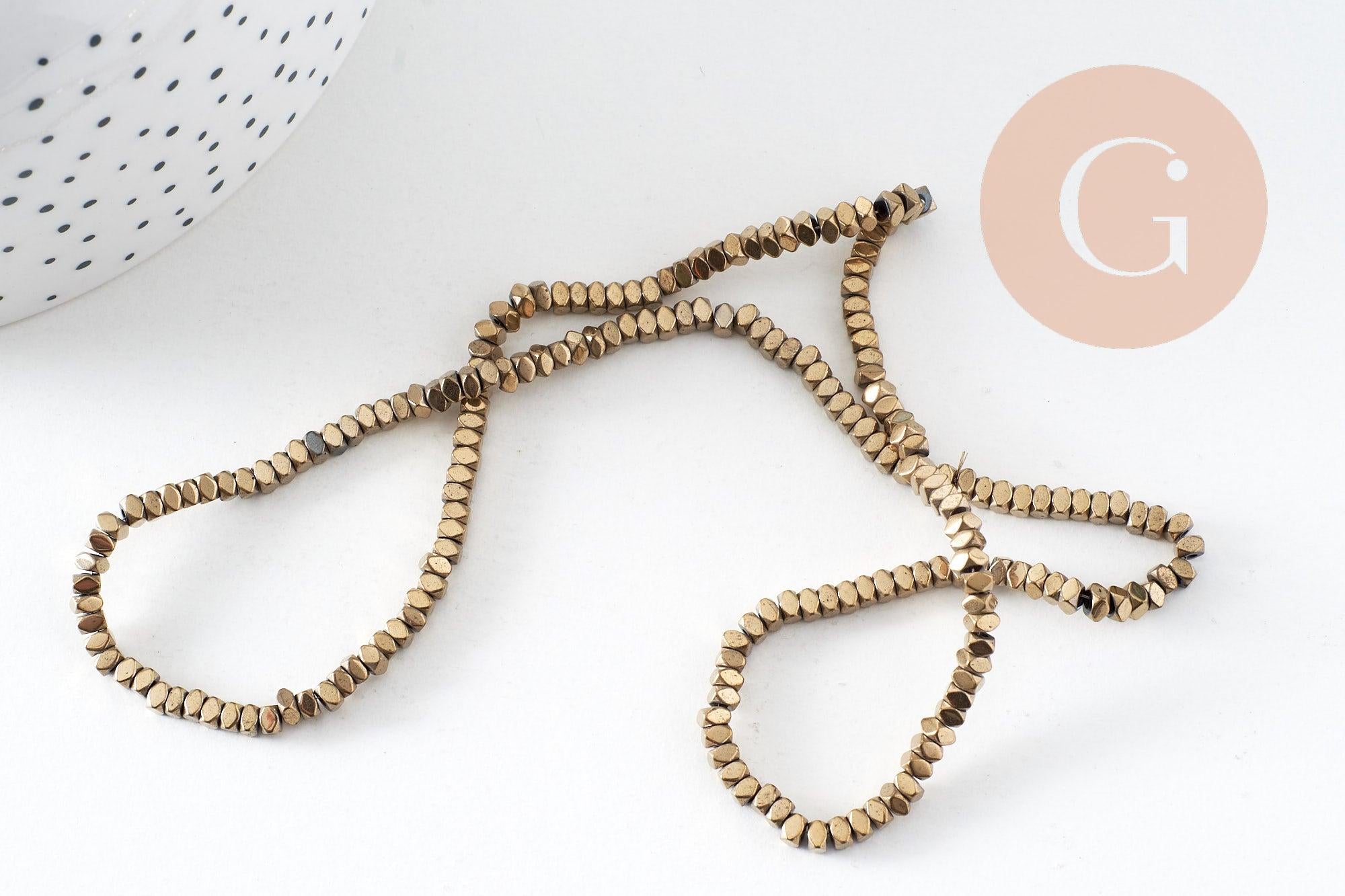 Perle losange hématite bronze non magnétique, des perles en imitation de pyrite pierre, 3x3mm,41cm le fil de 200 perles, x1 (G5022)