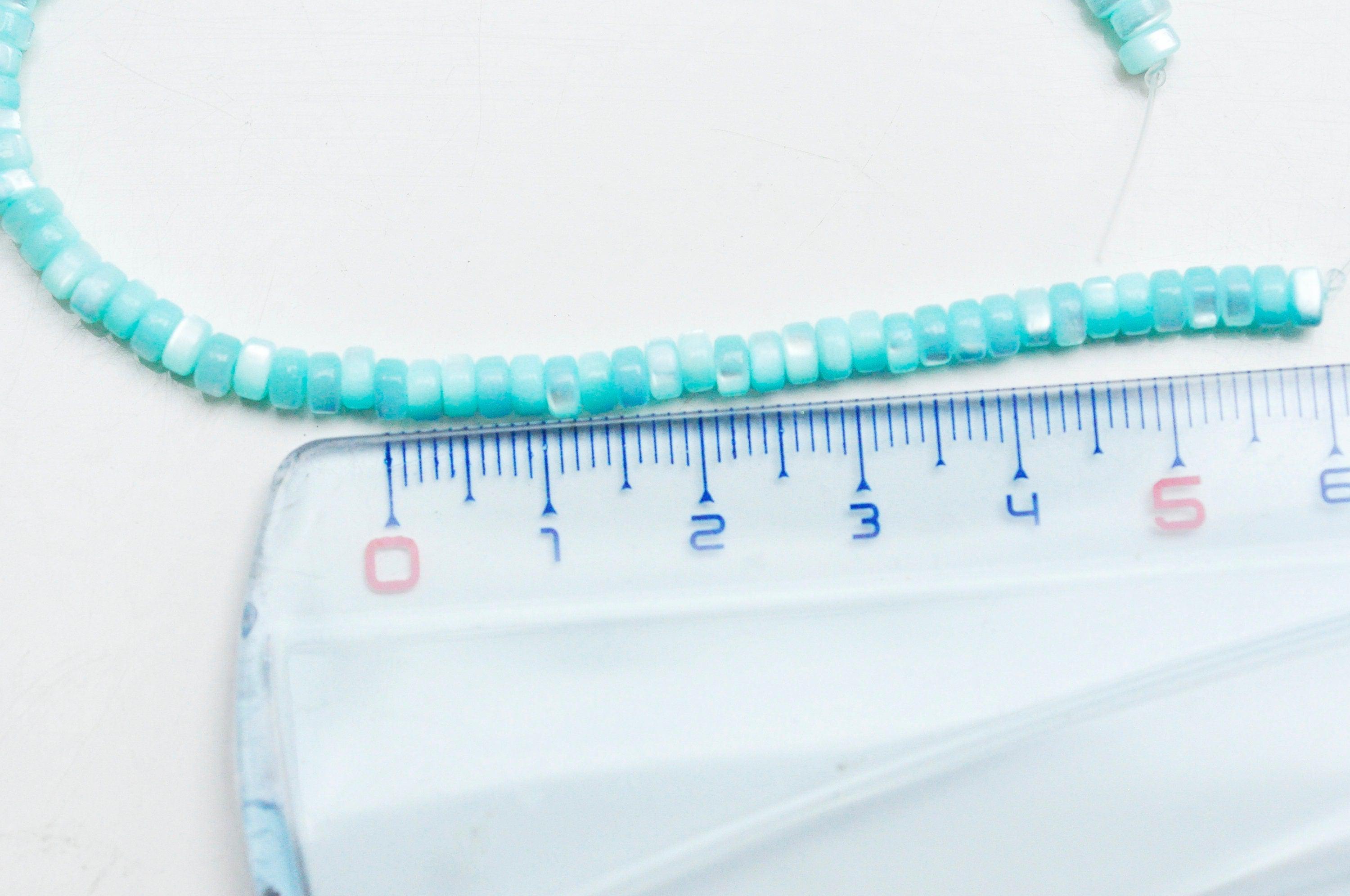 perla natural de nácar heishi azul turquesa pastel, tubo de concha de colores, perla de concha, creación de joyas, 2x4 mm, hilo de 185 perlas 1 hebra completa de cuentas heishi rondelle de nácar azul turquesa pastel (aproximadamente 38 cm)...