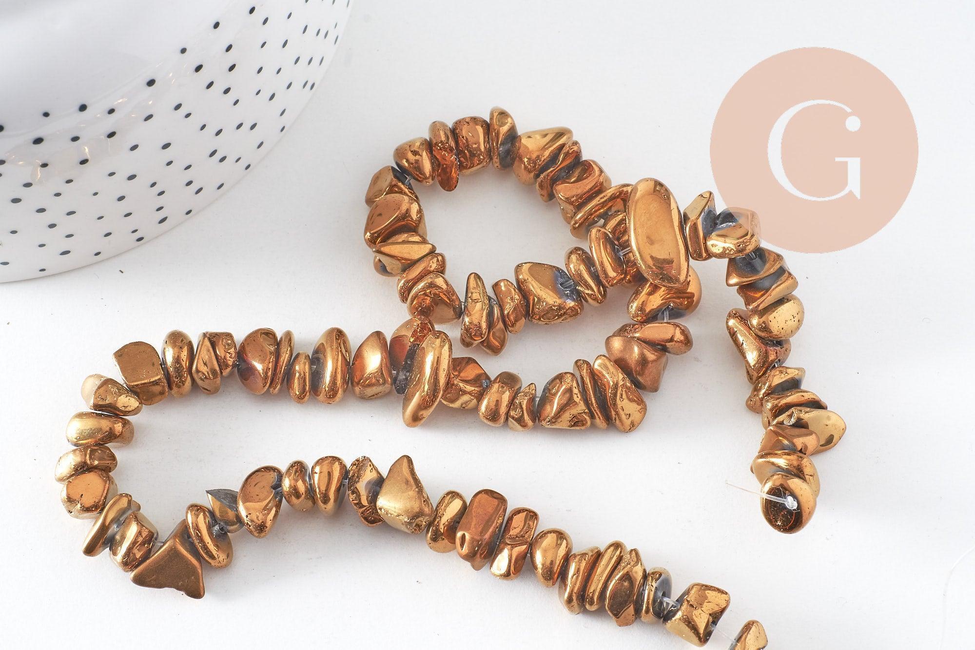 Crea multitud de piezas de bisutería casera utilizando estas cuentas de cuarzo dorado natural en forma de pepitas .