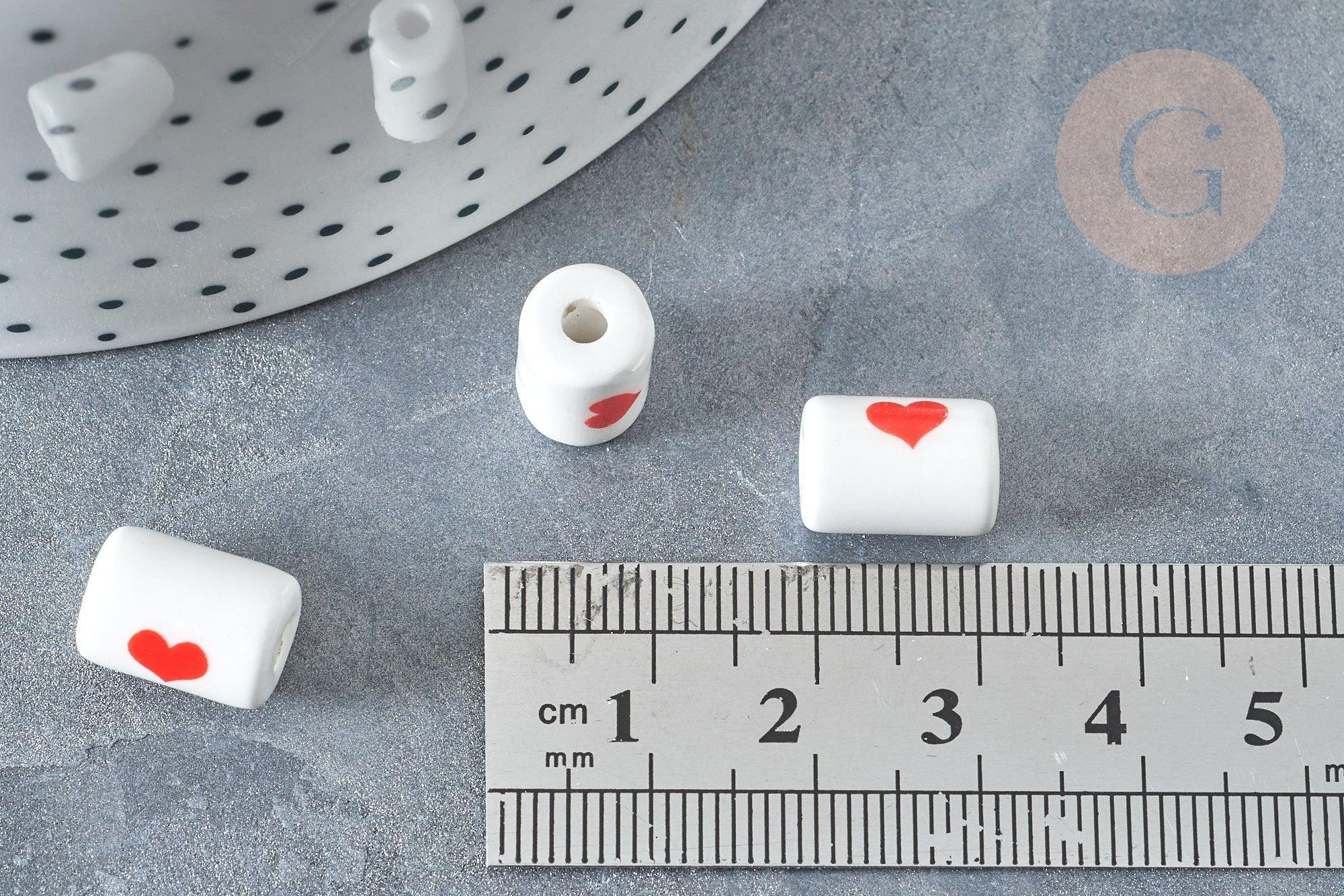 Estas cuentas de columna de cerámica blanca con un corazón rojo son ideales para todas tus creaciones de bisutería DIY.