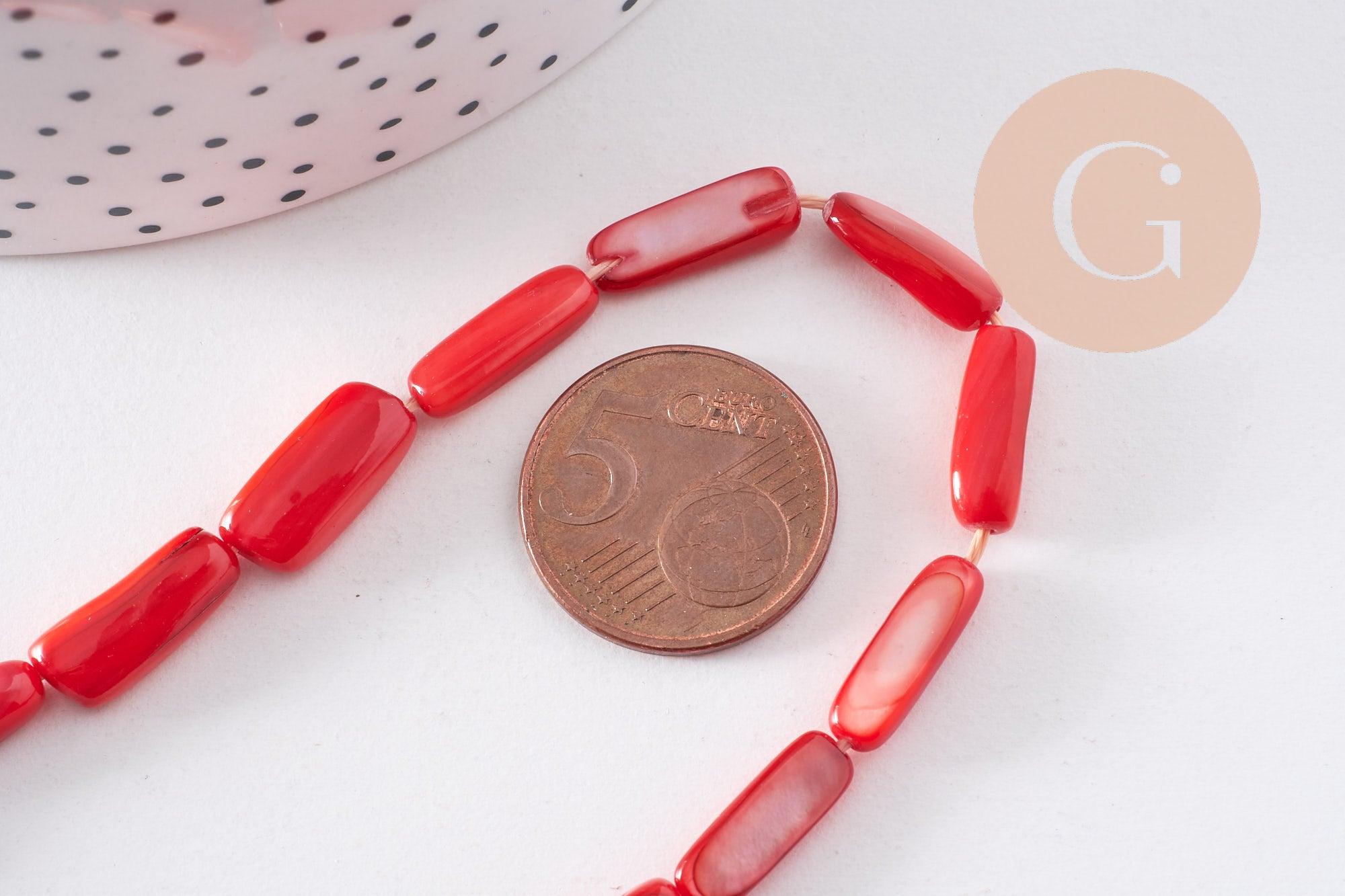 Perle rectangle nacre rouge naturelle, perle rectangulaire, coquillage teinté rouge, 14mm,fil de 39cm, x1 (G1063)