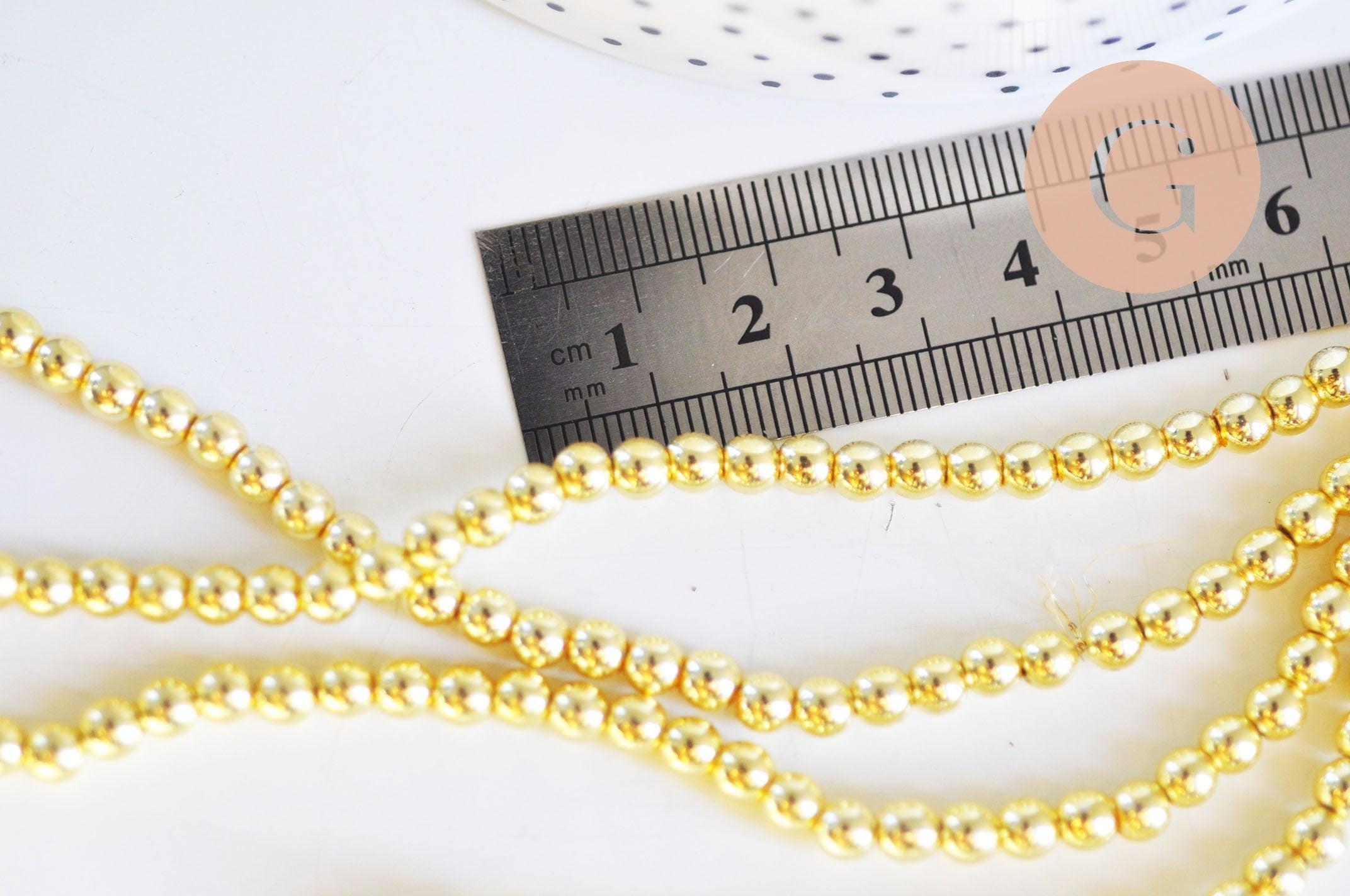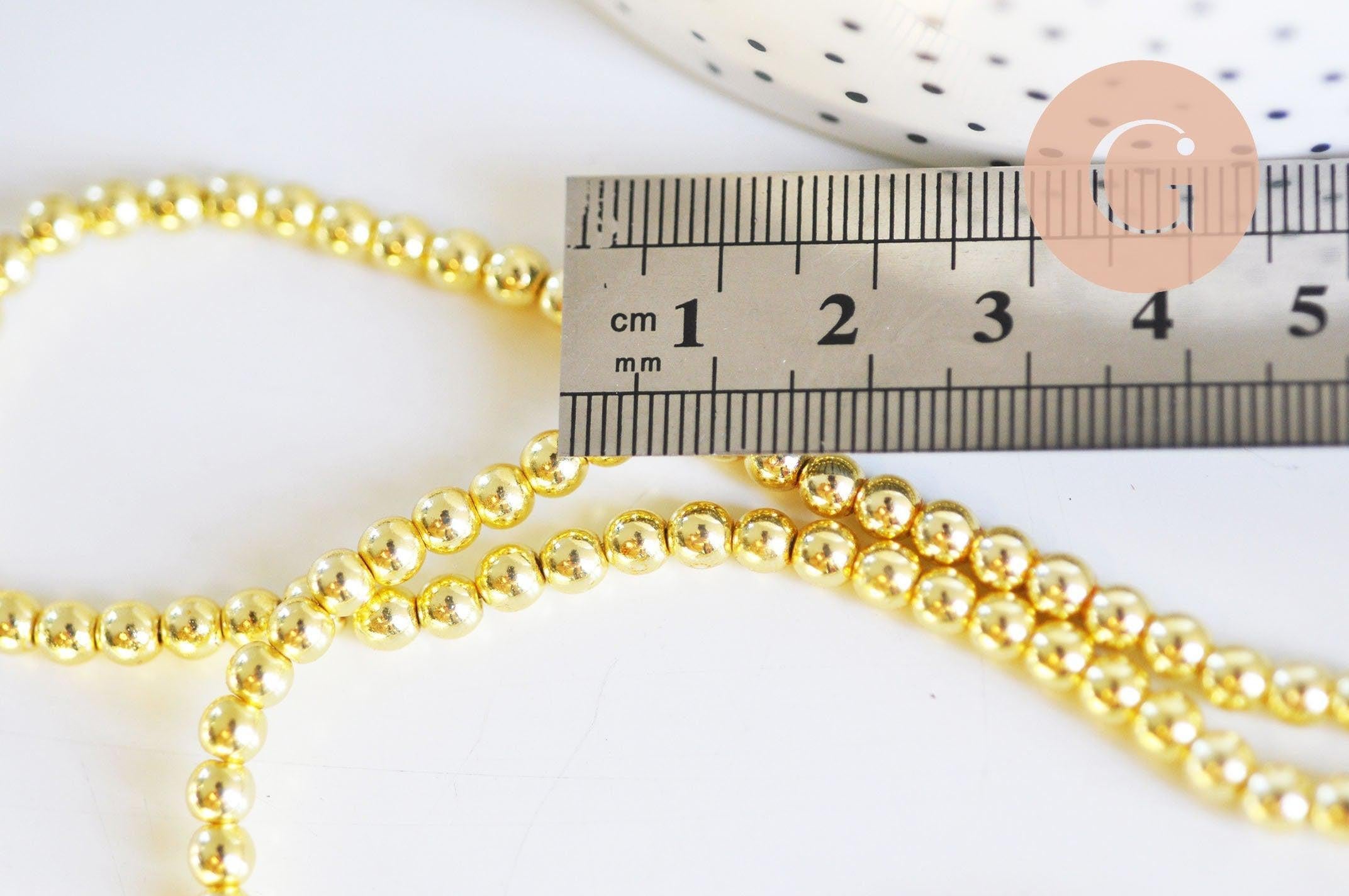 Perle ronde hématite dorée 4mm, perle hématite synthétique pierre, fil de 39cm, x1 (G6272)