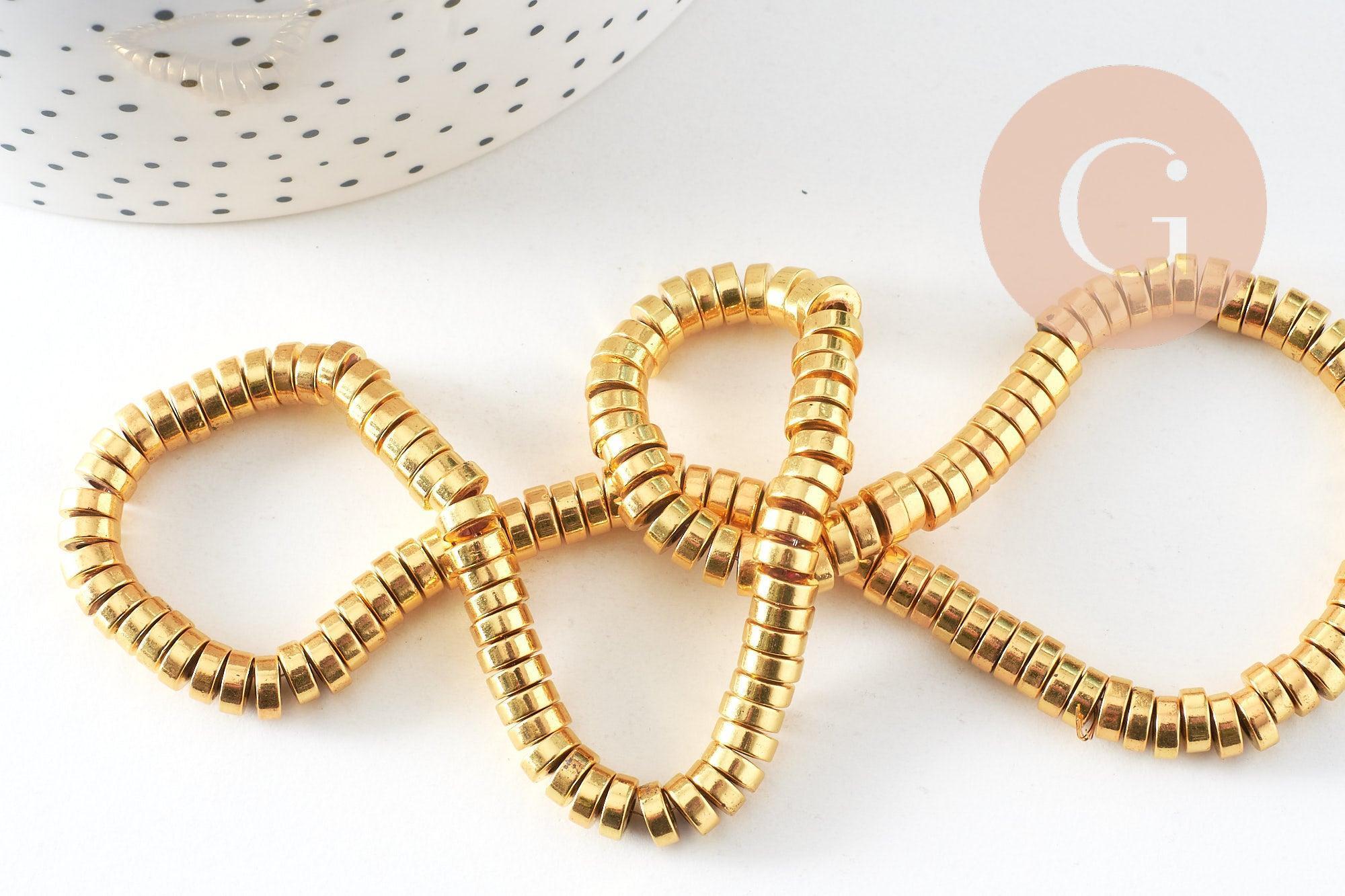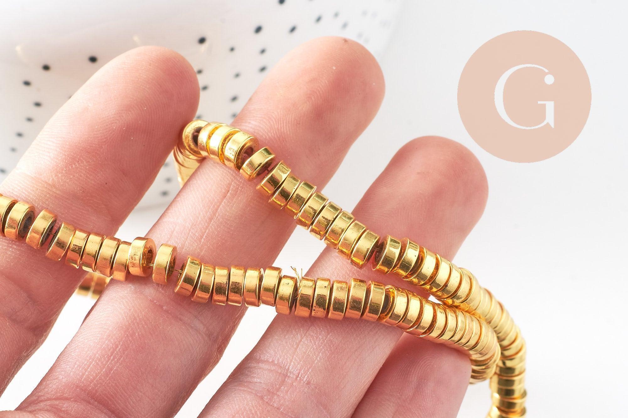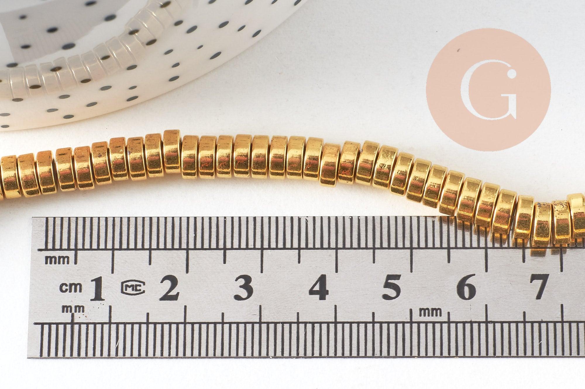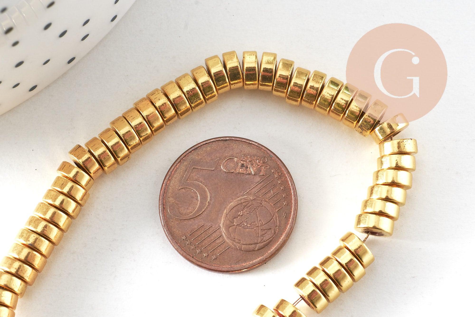 Cuentas de hematita dorada en forma de rondelle, cuentas de hematita, piedra, cuentas de piedra heishi, 6 mm, tira de 175 cuentas, x1 (G7059)