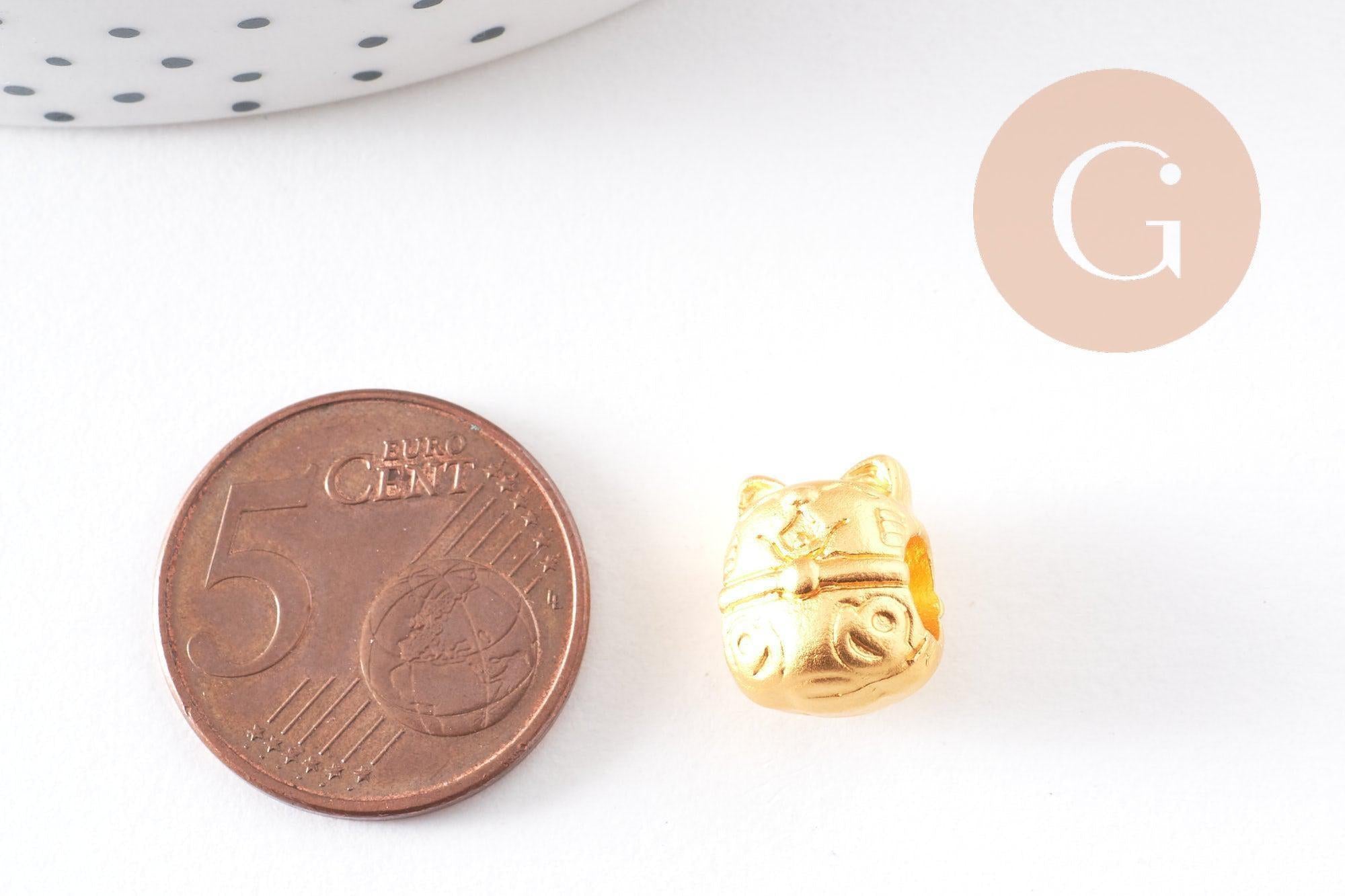 Perle tête de chat porte-bonheur zamac doré mat 12.5mm, x5 (G10251)