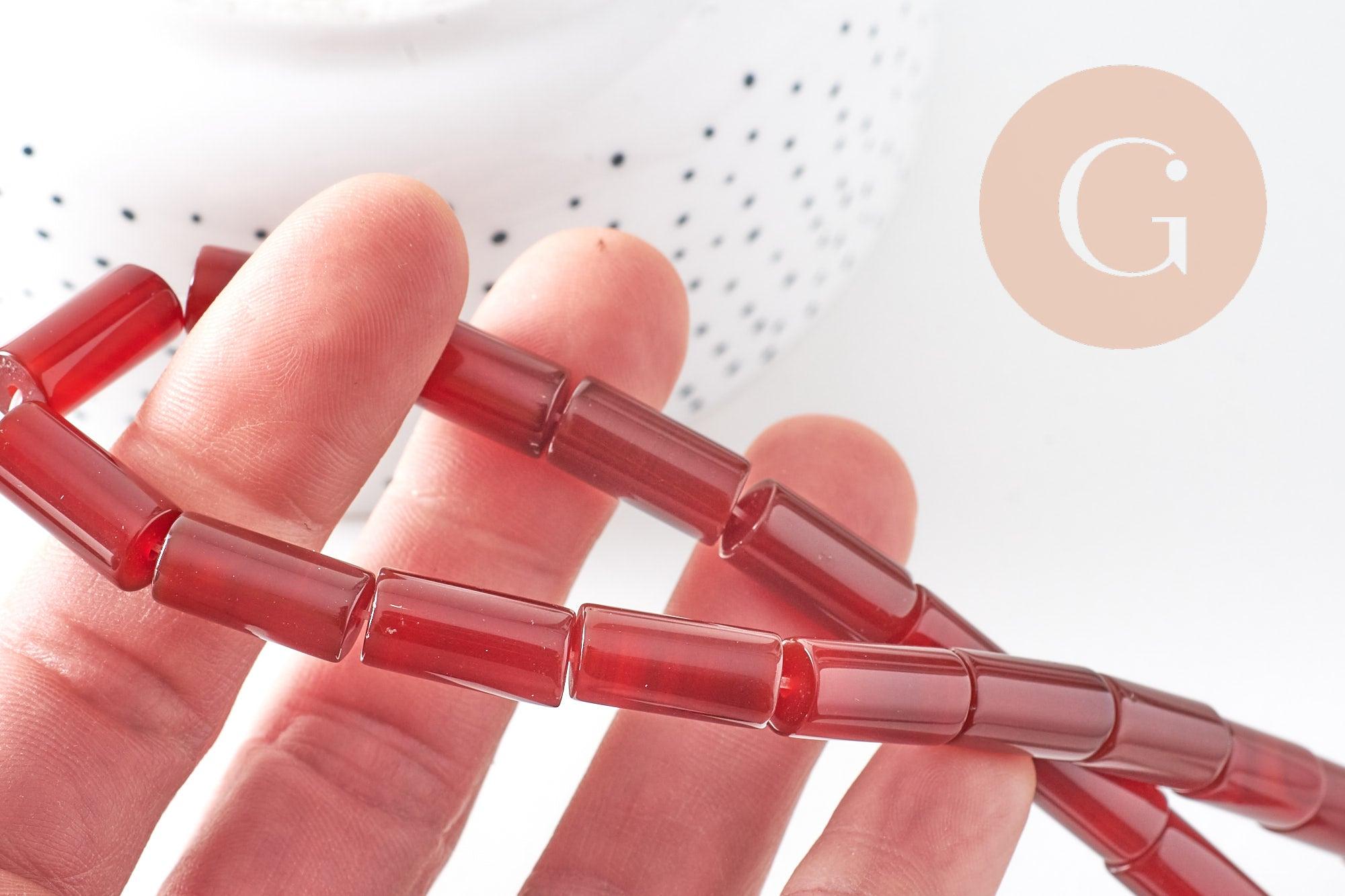 Dale un toque de calidez y energía a tus creaciones con estas hermosas cuentas tubulares de cornalina natural . Su intenso color rojo anaranjado se consigue mediante un proceso tradicional de teñido y calentamiento, conservando al mismo tiempo las propiedades de la piedra.