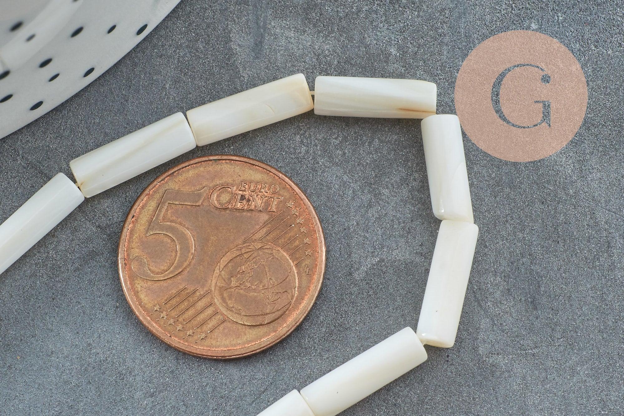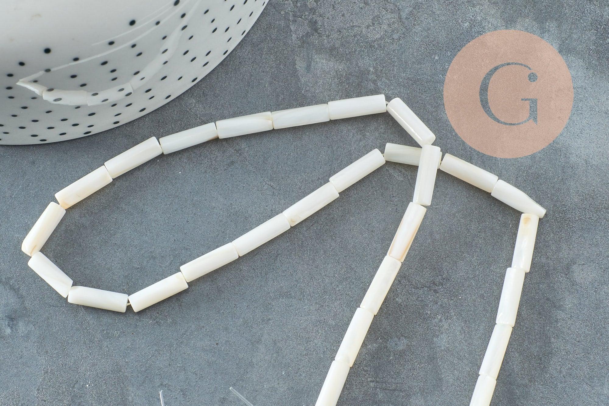 Estas bonitas cuentas tubulares de nácar te permitirán crear muchas bisutería DIY . Brillantes y naturales, serán ideales para crear tus pulseras y collares.