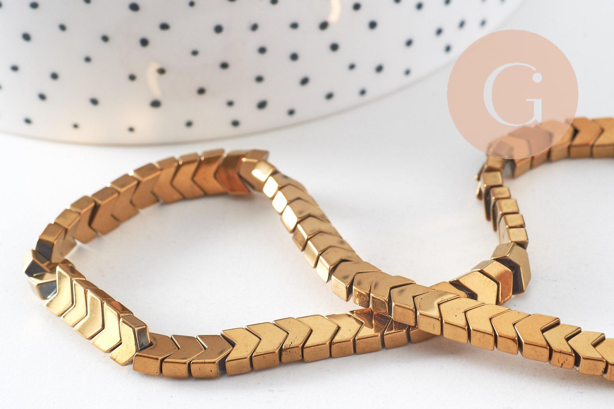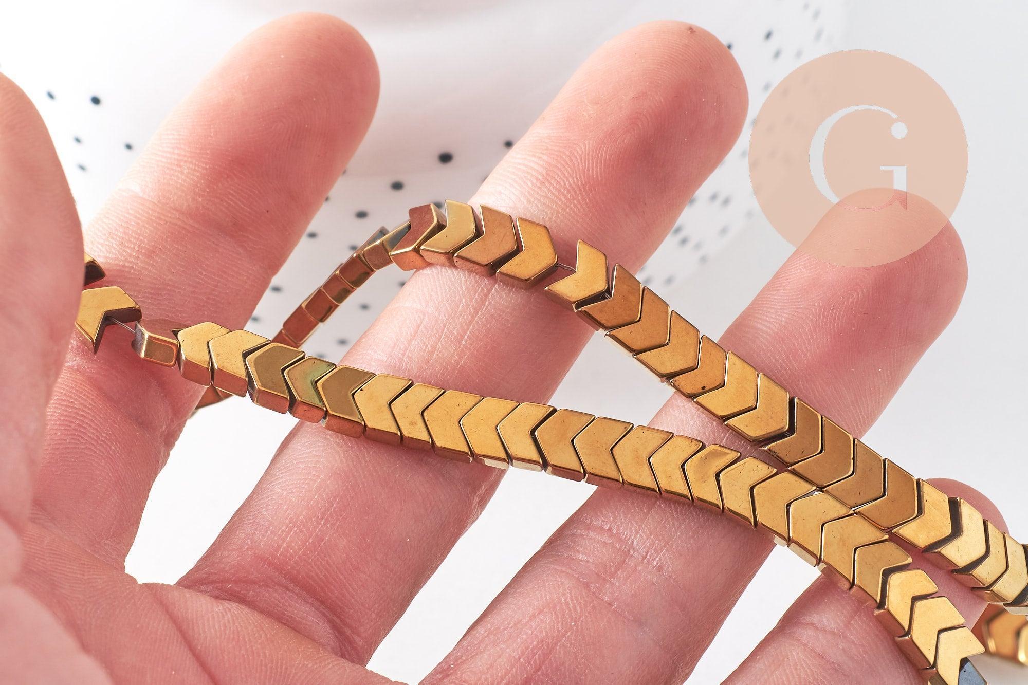 Cuentas de flecha de hematita dorada, suministros creativos, cuentas de piedra fina, hematita, piedra dorada, hilo de 90 cuentas x1 (G3682)