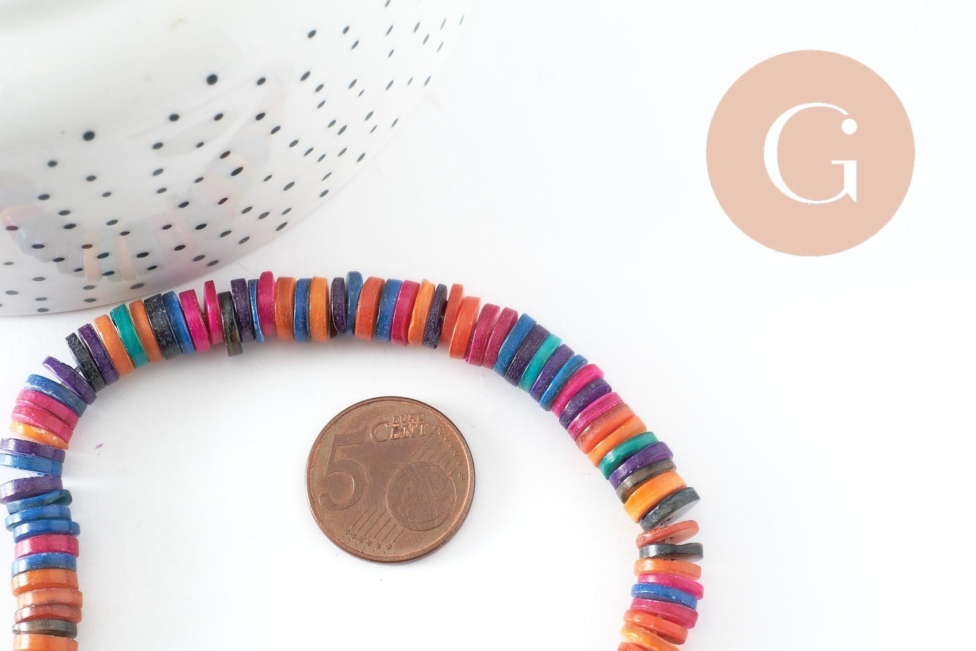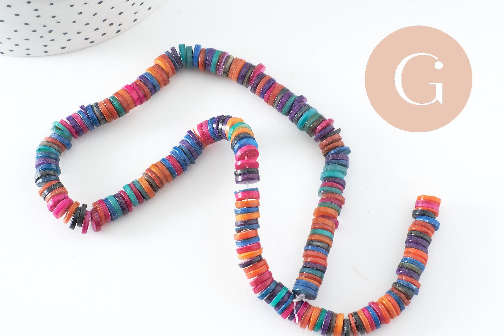 1 hilo completo de cuentas de aproximadamente 200 cuentas de concha heishi teñidas de multicolor