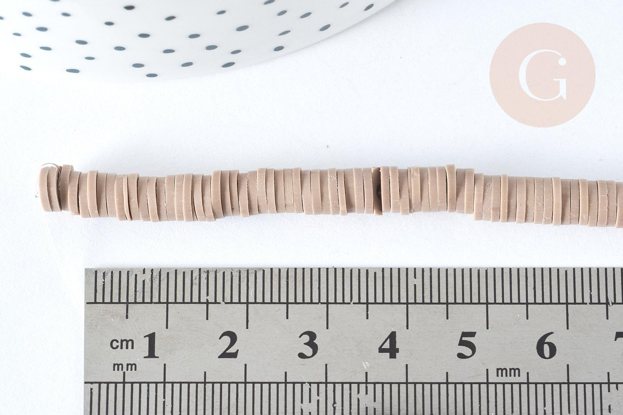 Perles disques polymère taupe 6mm,fabrication bijoux heishi plastique, le fil de 39,9cm G7191