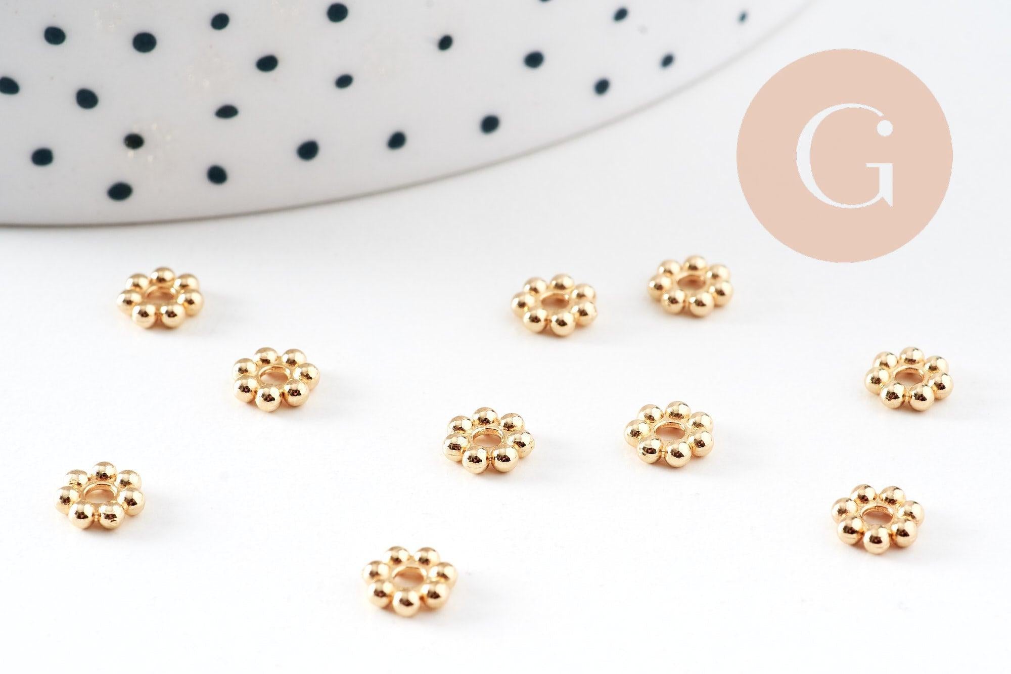 Realza tus creaciones con estas cuentas espaciadoras de acero inoxidable 304 chapadas en oro de 18 quilates con forma de flor . Su diseño floral texturizado añade un brillo delicado y reluciente, perfecto para aportar profundidad y un toque sofisticado a tus pulseras, collares y pendientes. Gracias a su chapado IP de 18 quilates, conservan su brillo durante años, a la vez que ofrecen una excelente resistencia al desgaste, al agua y a la transpiración.