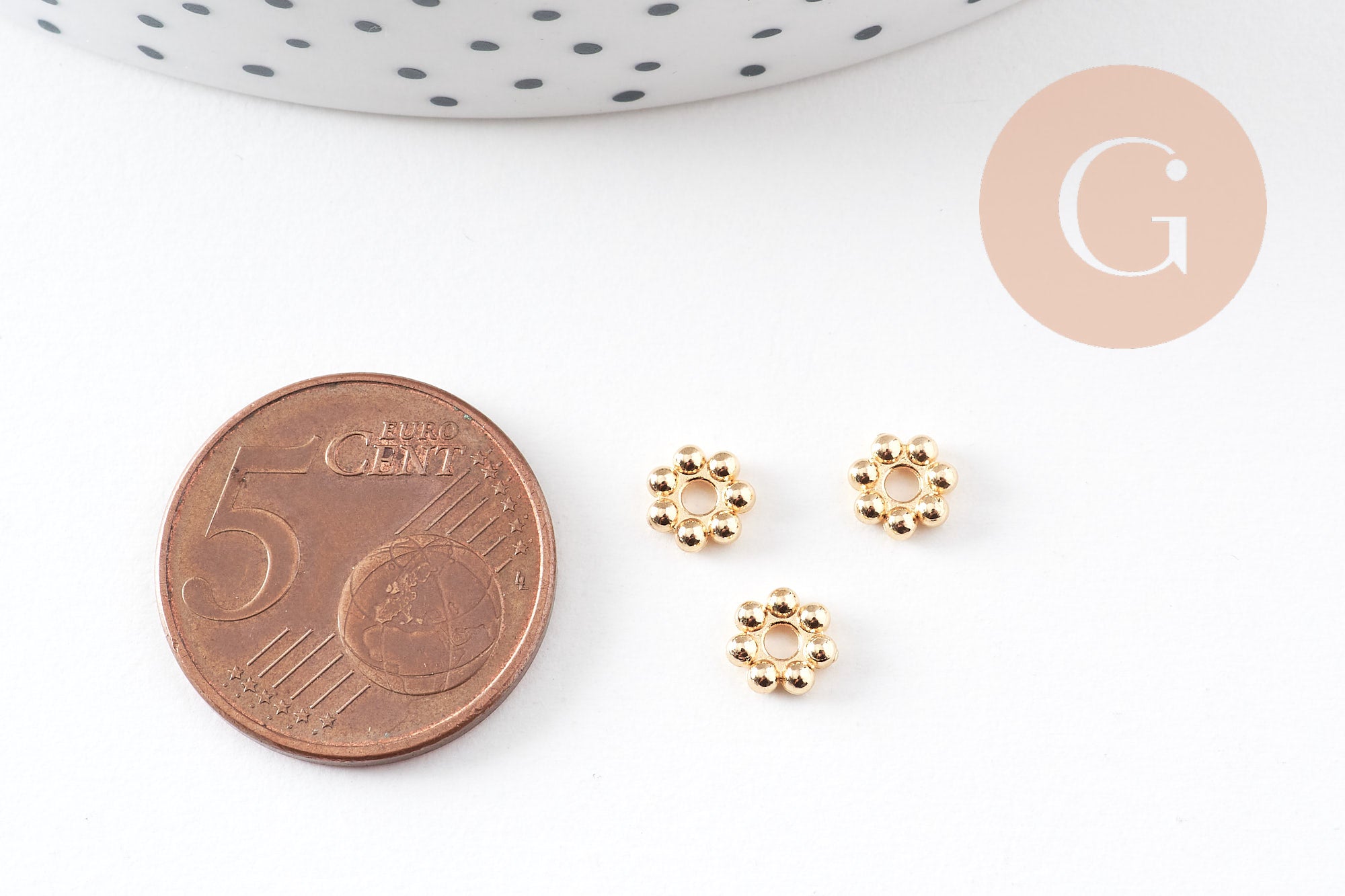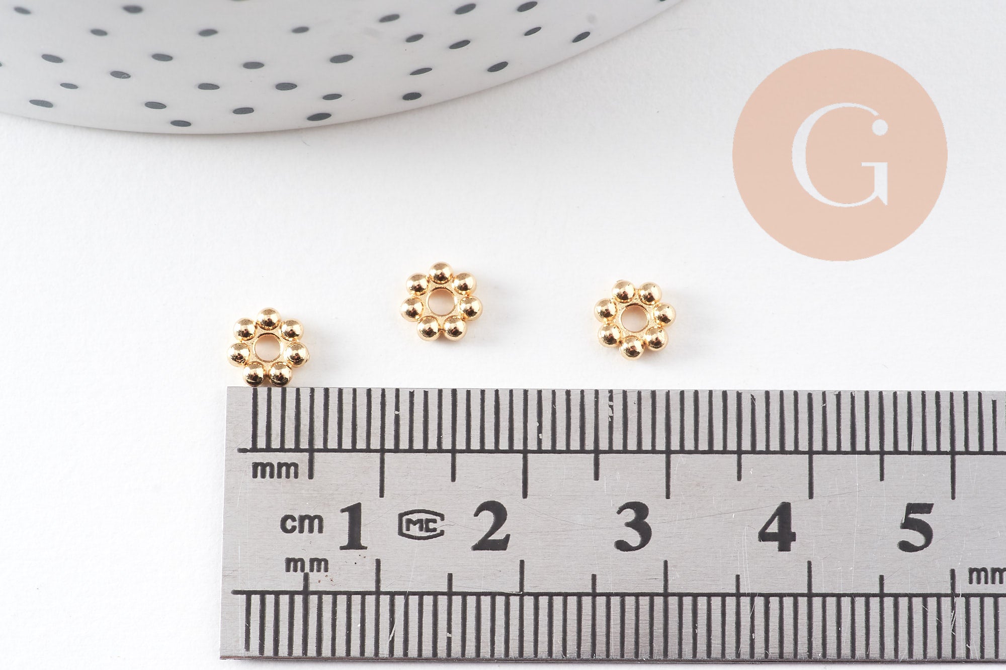 10 cuentas espaciadoras de acero inoxidable 304 válidas con forma de flor, chapadas en oro de 18 quilates, 6 mm
