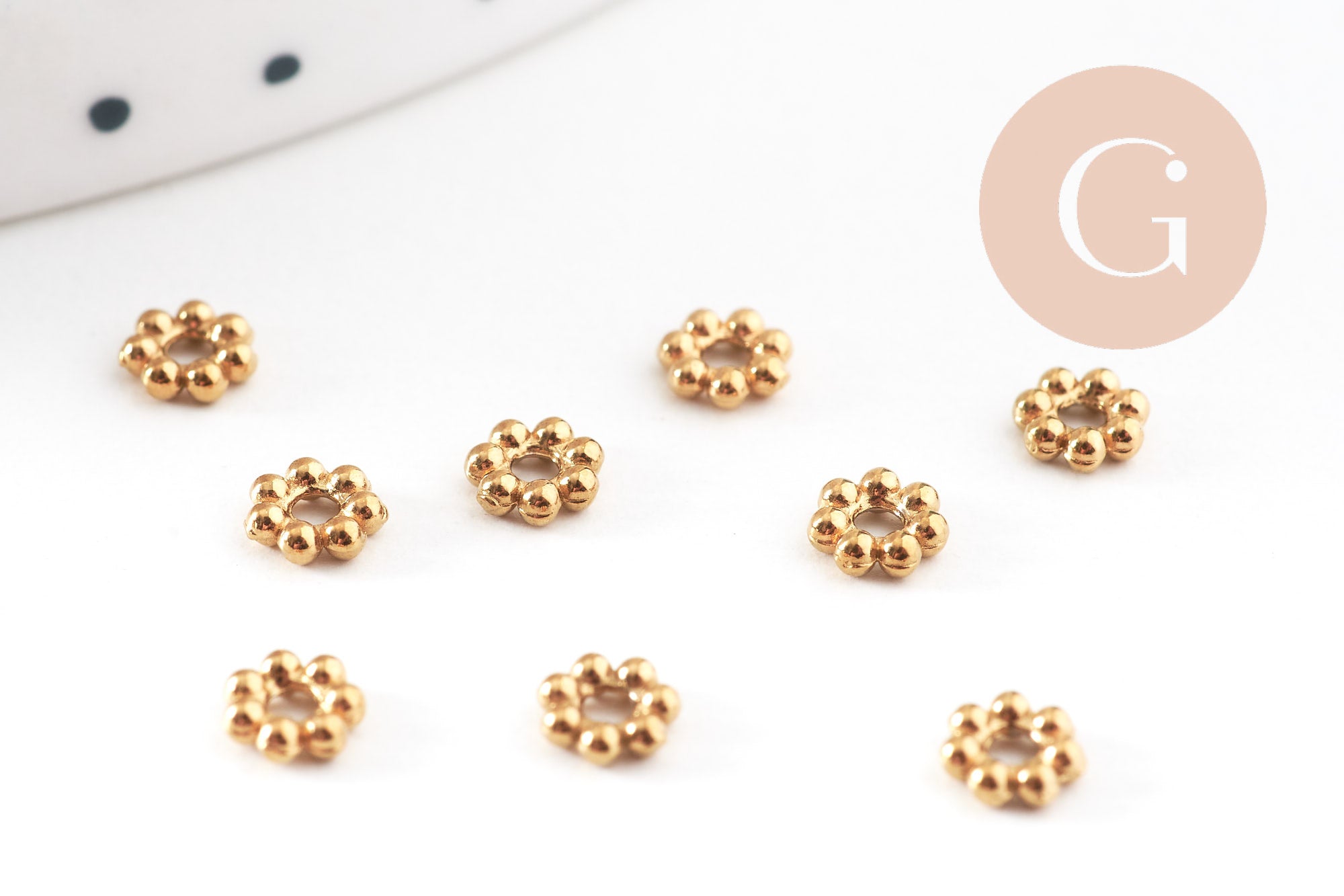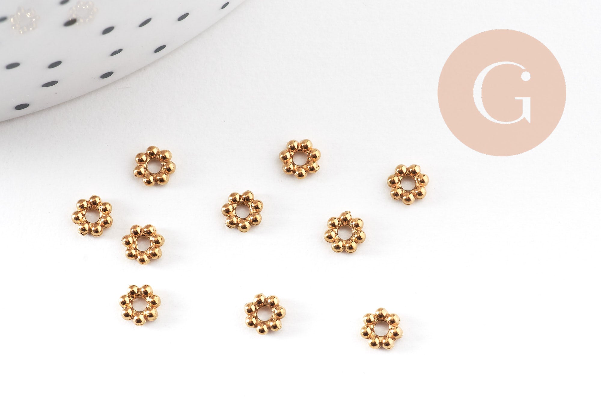 Cuentas espaciadoras redondas con forma de flor, acero inoxidable 304 chapado en oro IP, 4 mm, paquete de 10. VÁLIDO