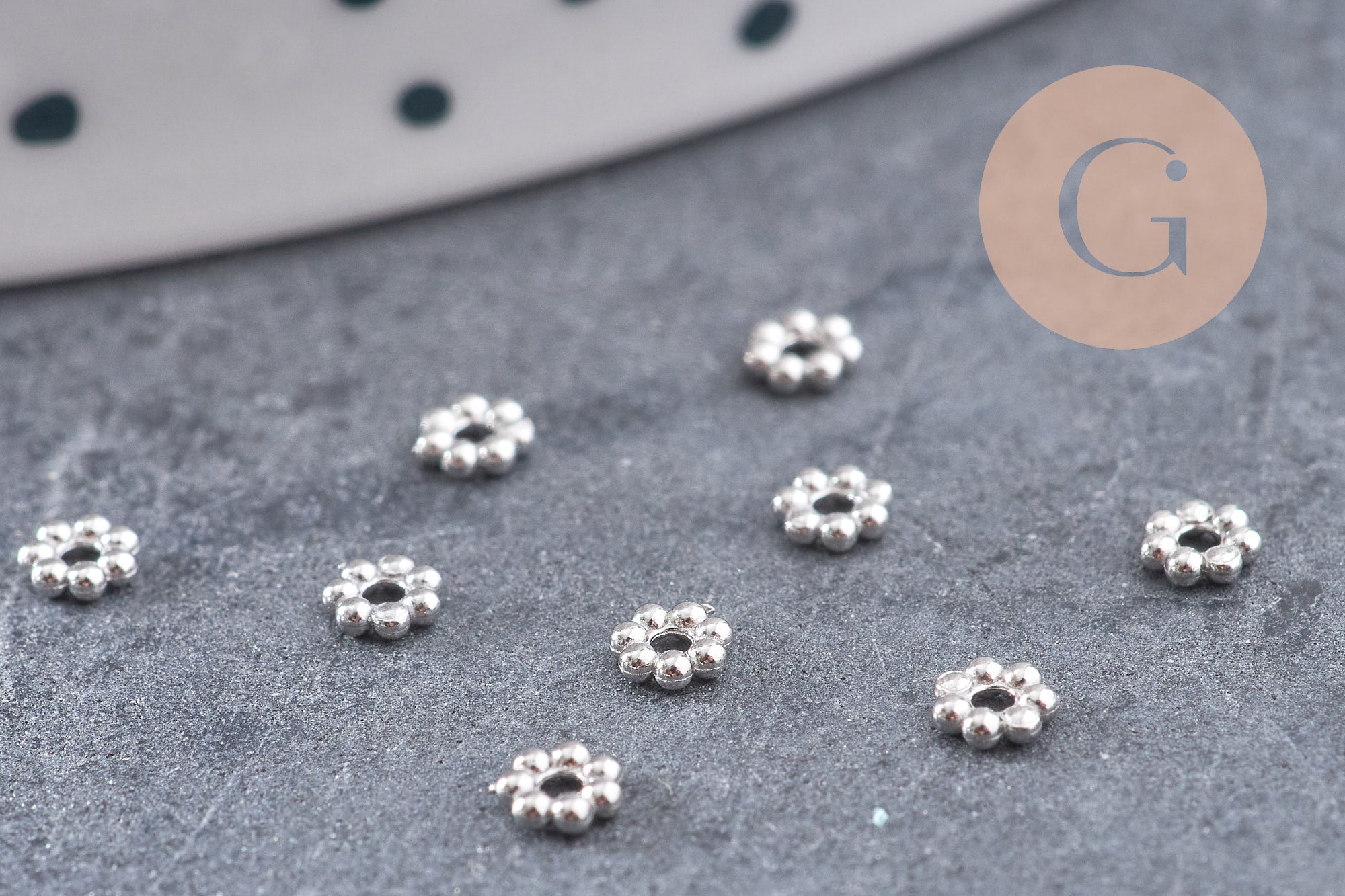 Añade un toque delicado y refinado a tus creaciones con estas cuentas espaciadoras de acero inoxidable 304 con acabado platino y forma de flor . Su diseño floral aporta un detalle elegante y discreto, perfecto para adornar collares, pulseras y pendientes hechos a mano.