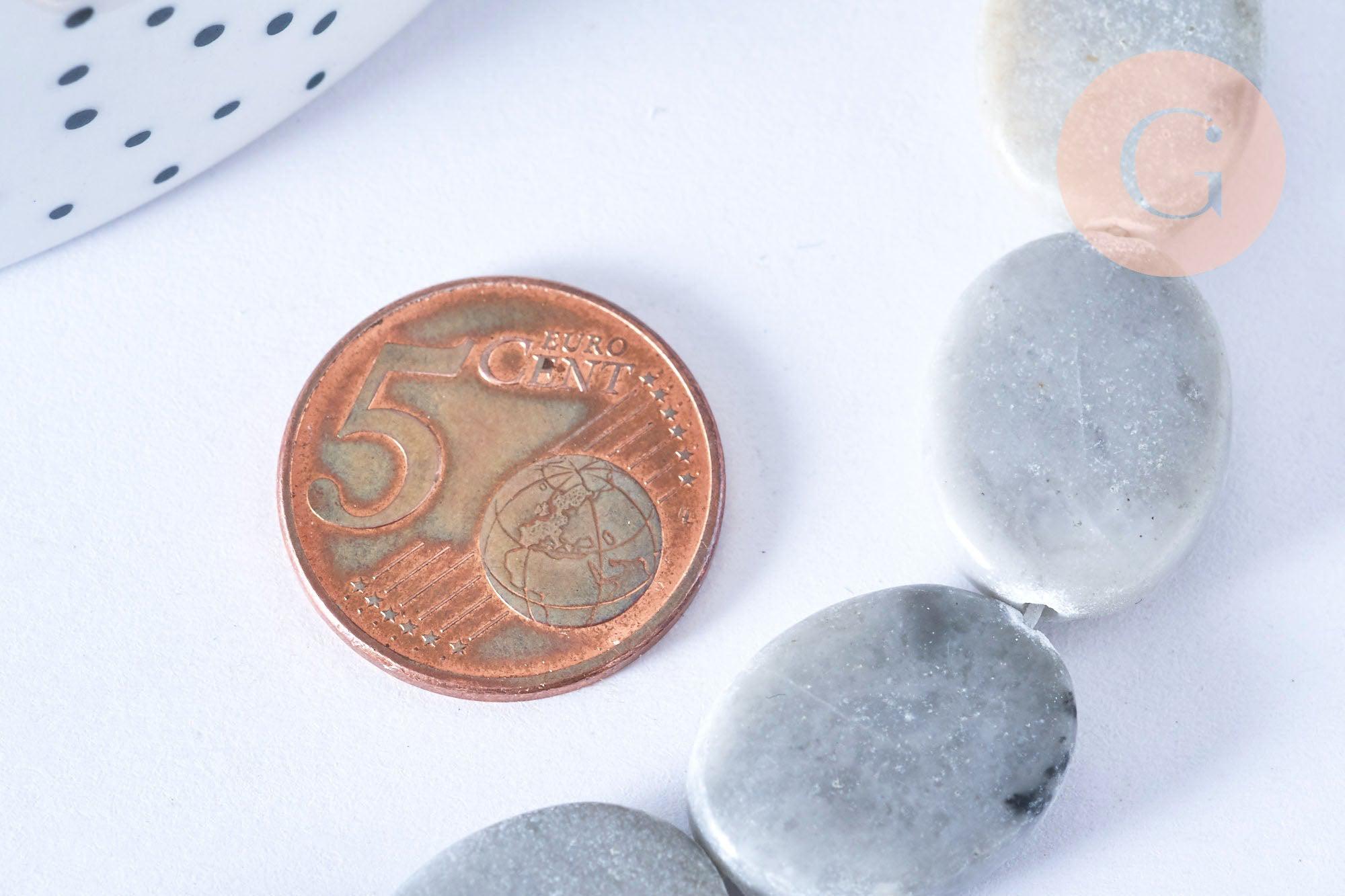 Estas cuentas ovaladas de jaspe gris natural son perfectas para los artesanos que buscan agregar un toque de sofisticación natural a sus diseños de joyería. Las cuentas tienen una forma elegante y un tamaño ideal para usarlas como centros de mesa o elementos decorativos en pulseras, collares y aretes.