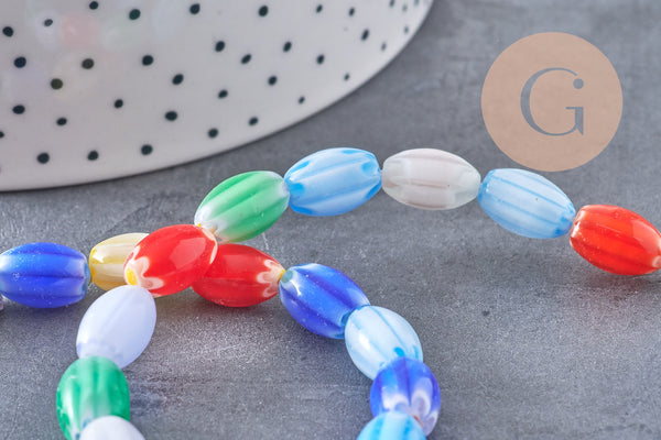 Perles ovales verre millefiori artisanal 12mm, x1 fil de 38cm (G10812)
