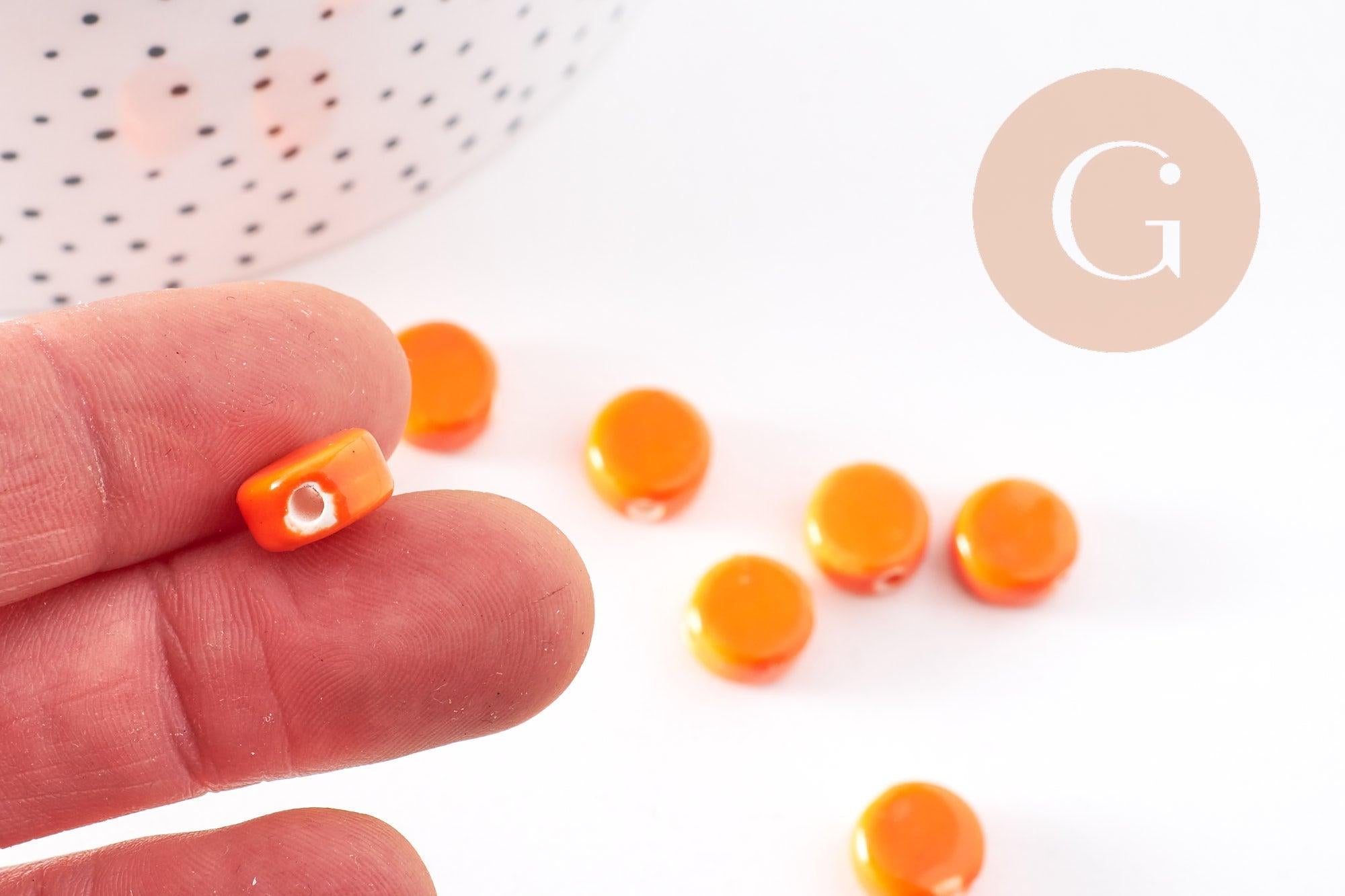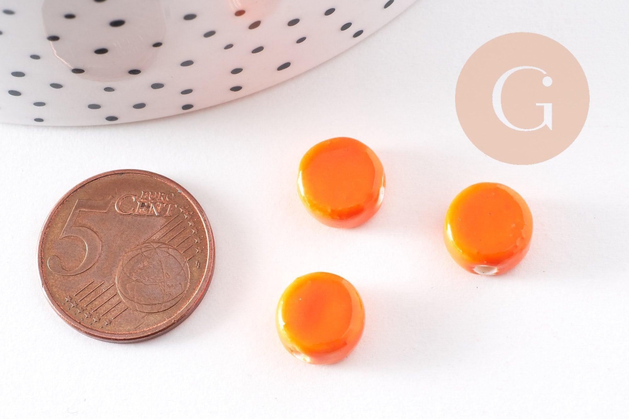 Cuentas de porcelana naranja, cuentas de cerámica, cuentas de disco, cerámica naranja, 10 mm, x10 G4729