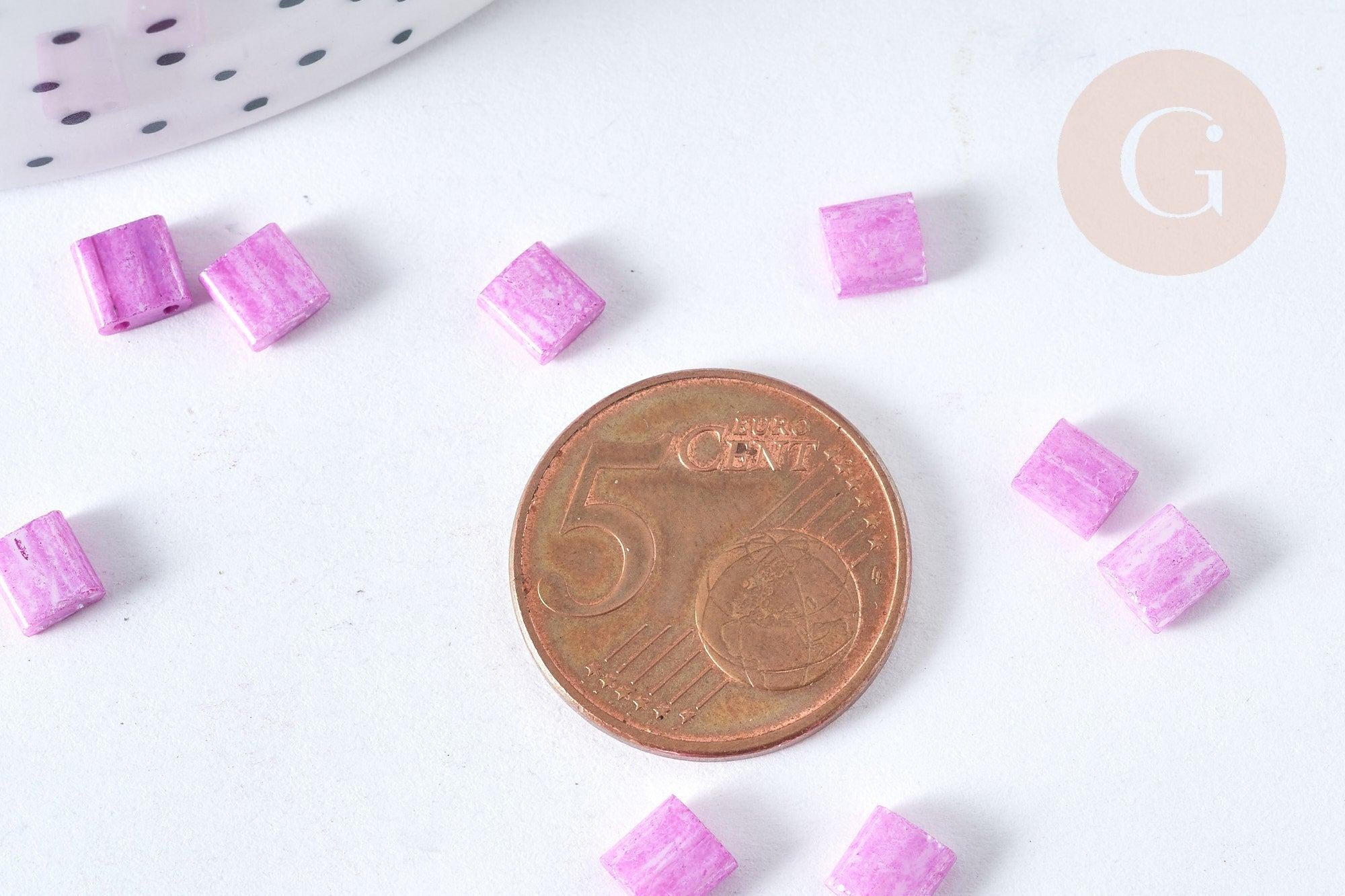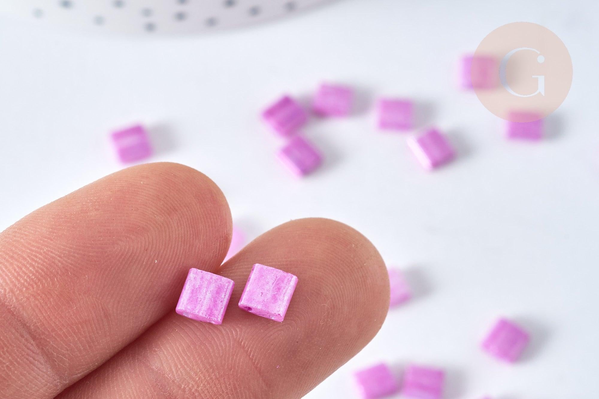 Lote de 50 cuentas de vidrio cuadradas de color lila y rosa, 4,5 mm, 2 agujeros, G7484