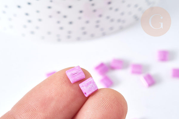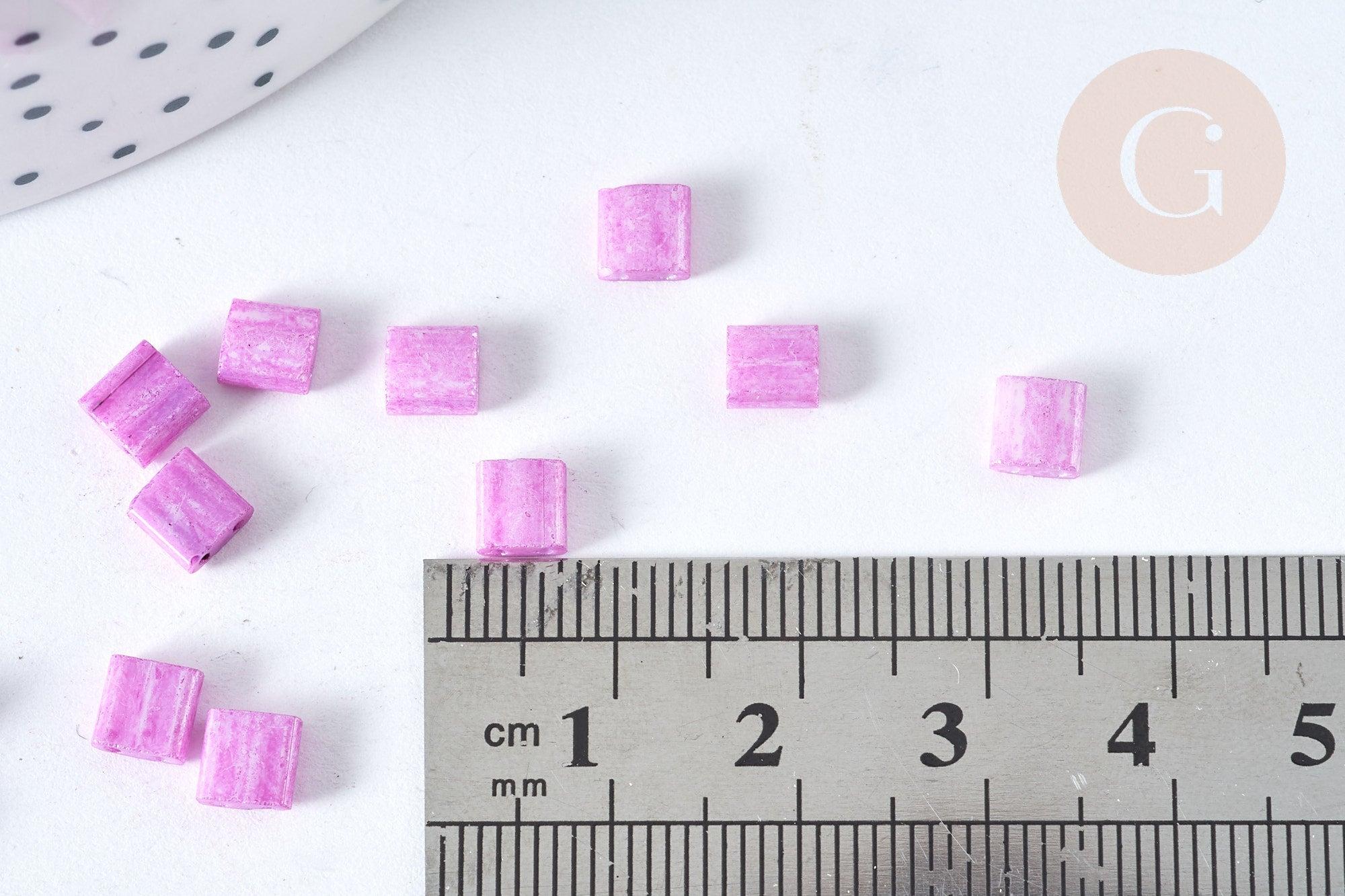 Paquete de 50 cuentas de vidrio cuadradas, color rosa lila, 4,5 mm, 2 agujeros