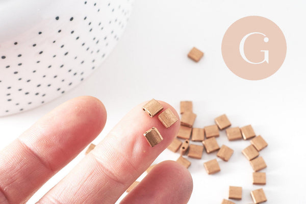 Cuentas de vidrio cuadradas de bronce Tila de 5 mm/2 agujeros, x50 (G5483)