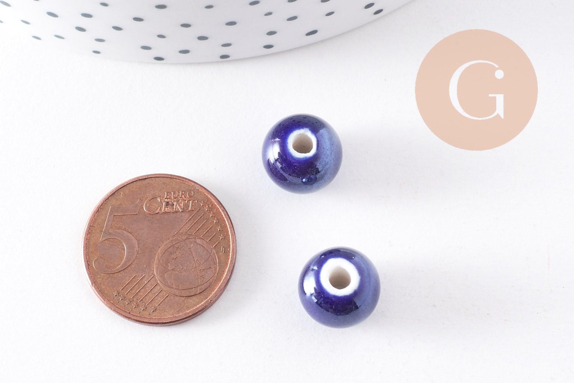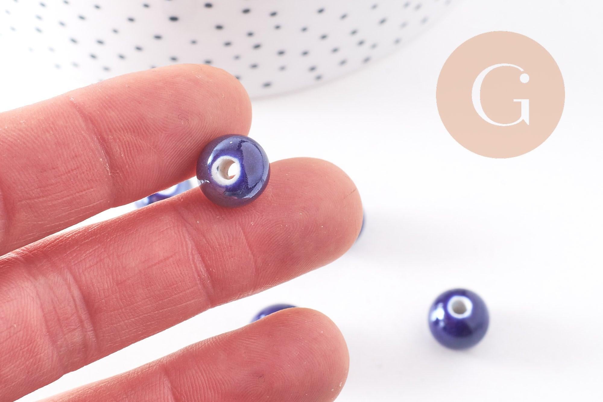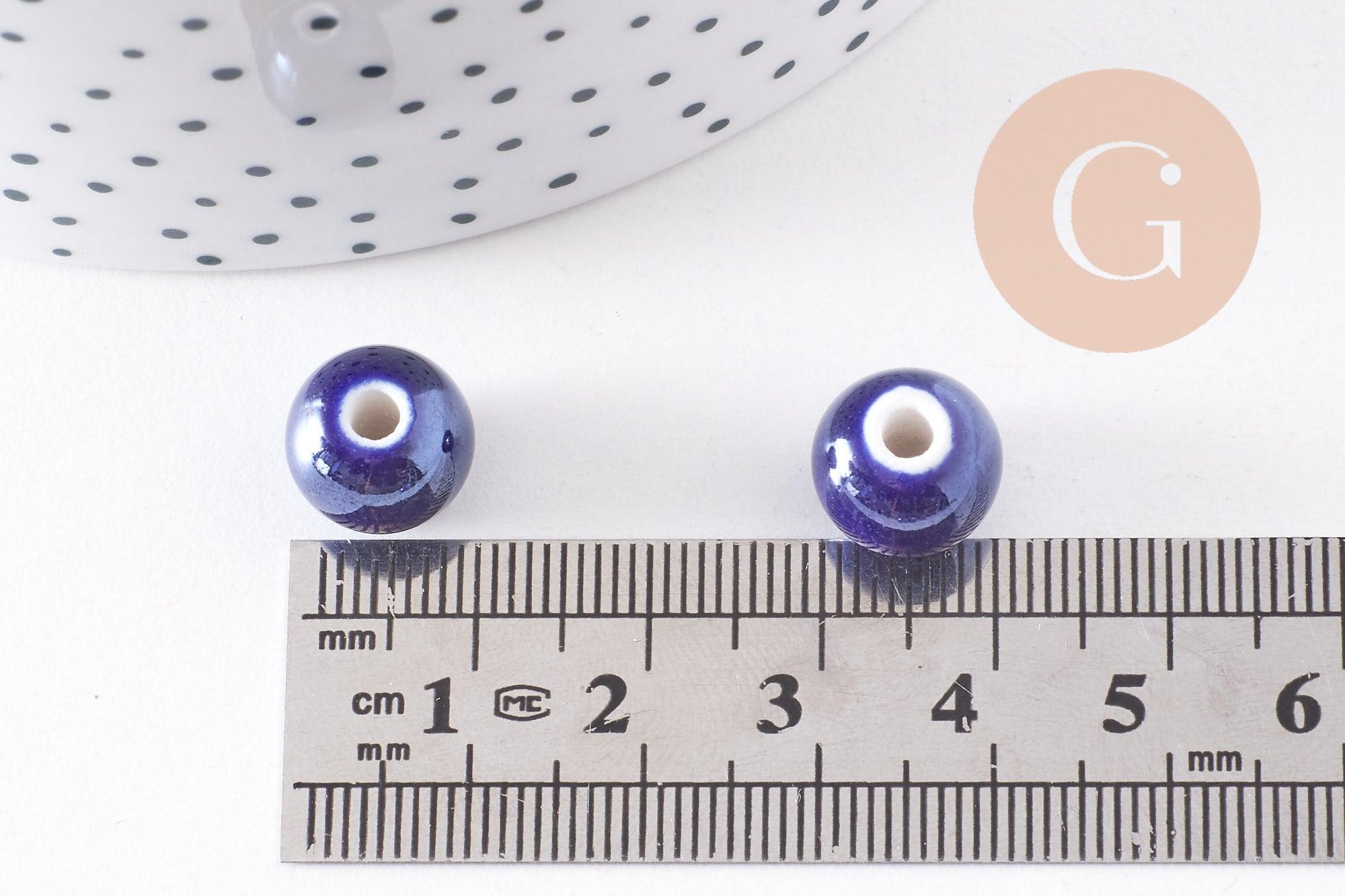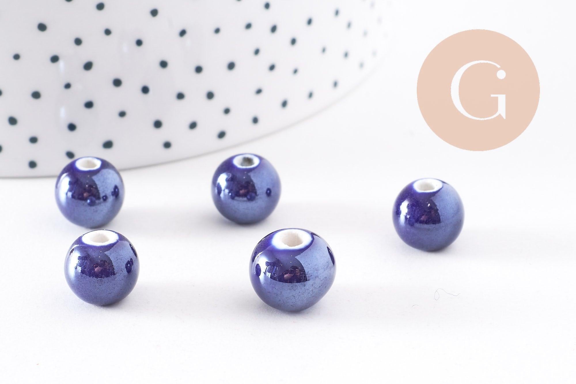 Cuentas redondas de porcelana azul iridiscente, cuenta redonda azul pato, porcelana azul, creación de joyas, 1 cm, x5 G1162