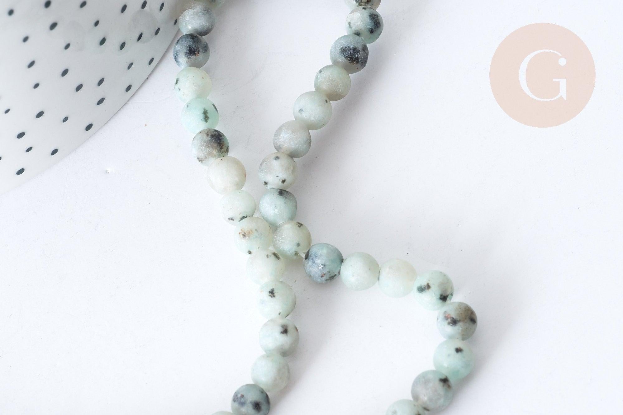 Adopte estas cuentas redondas de jaspe sésamo y kiwi para sus numerosas piezas de bisutería .