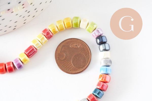 Perles tube heishi porcelaine multicolore 4.5mm, création bijoux fantaisie DIY, fil de 30cm, x1 G9660