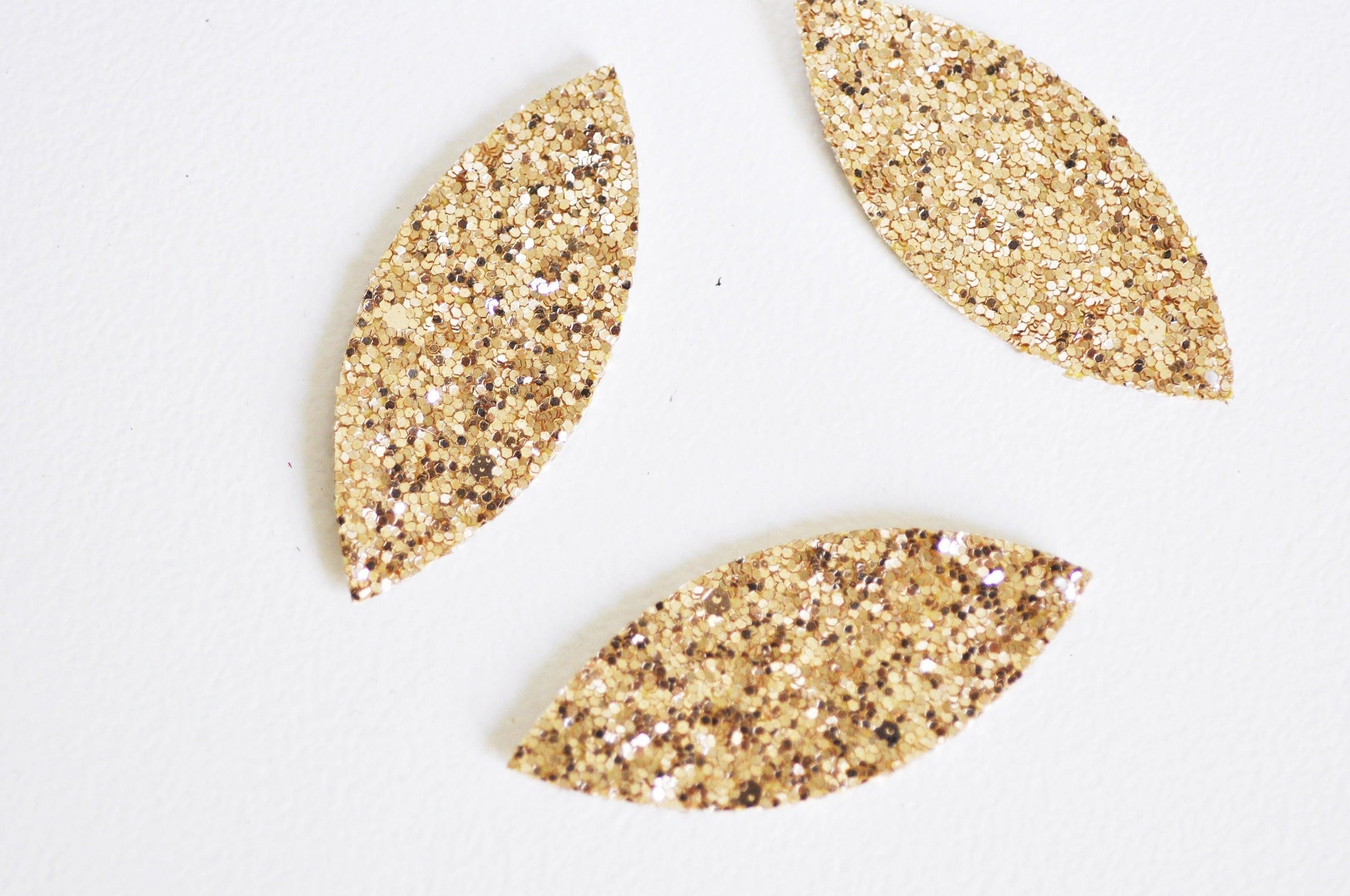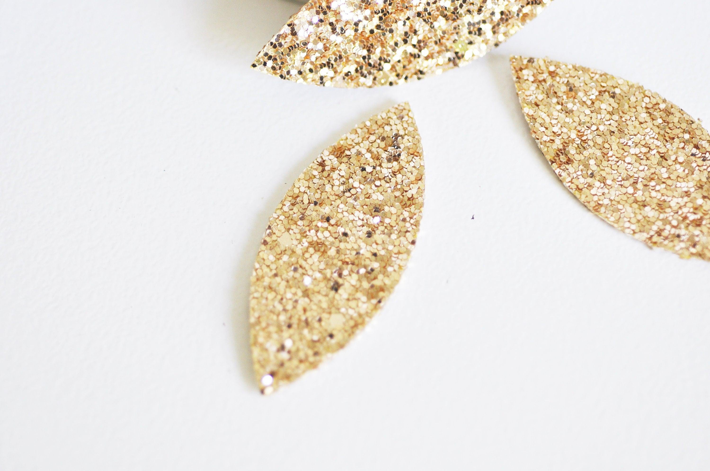 Suministro creativo de pétalos de imitación de cuero con purpurina dorada, cuero sintético, confección de peinados, accesorio de boda, 57,5 mm, x 10 G4793