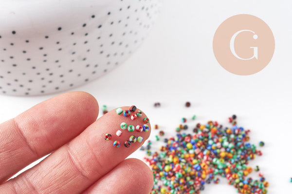 Apportez une touche colorée, joyeuse et créative à vos bijoux avec ces petites perles de rocaille rayées multicolores 2 mm. Leur finition opaque et leurs rayures contrastées offrent un rendu vif et ludique, parfait pour des bijoux d’été, des créations bohèmes ou des accessoires destinés aux enfants et adolescents. Faciles à enfiler et polyvalentes, elles conviennent aussi bien au tissage qu’à la création de bracelets, colliers ou boucles d’oreilles.