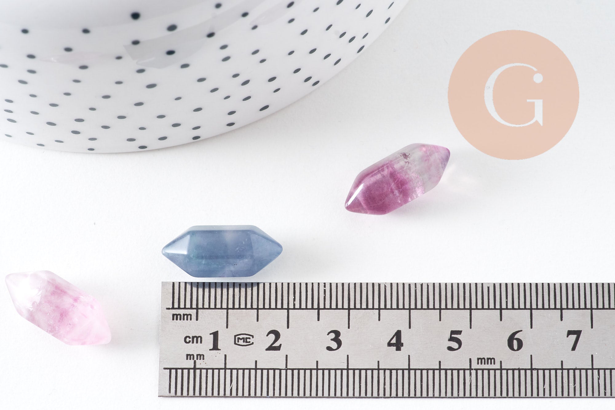 Pointe double fluorite naturelle non percée 18mm, x1 (G5622)