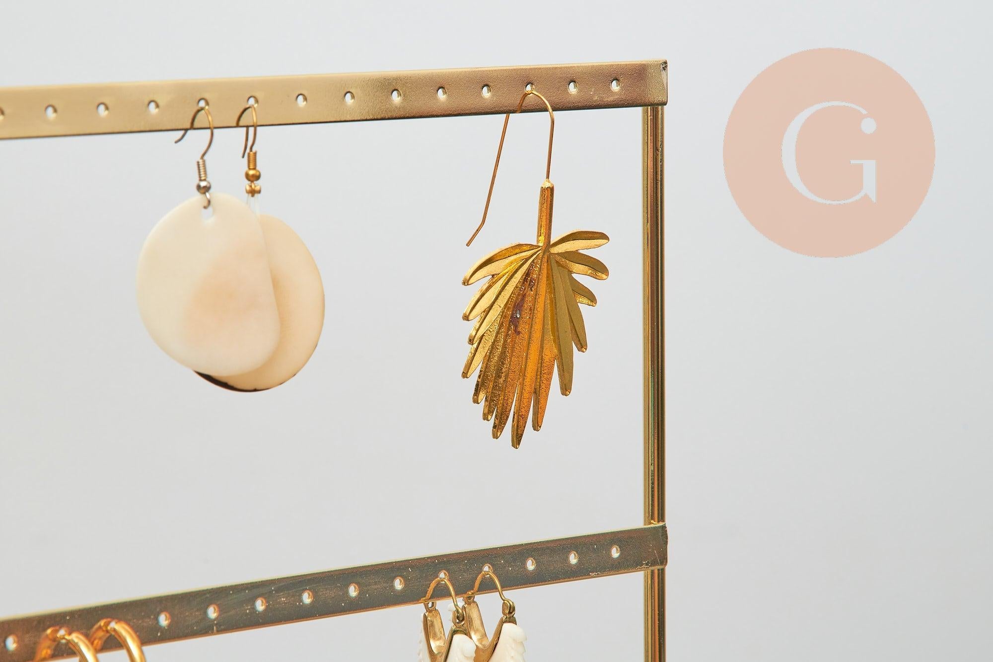 Expositor de joyas para pendientes, latón dorado, base de madera, 25,25 cm, x1 (G7468)