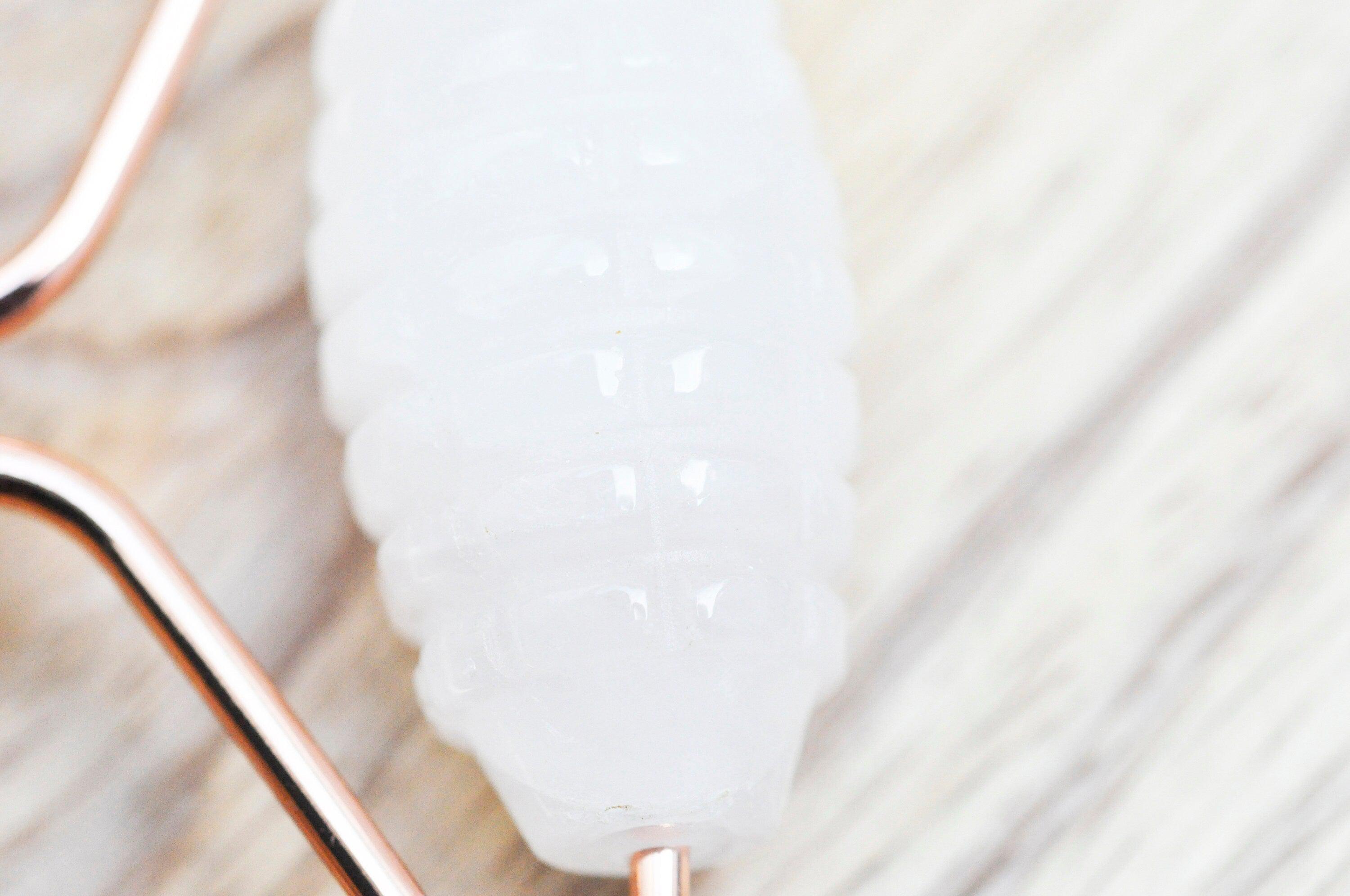 Un rodillo de masaje de cuarzo rosa natural que estimulará los tejidos, promoverá la circulación sanguínea y el drenaje linfático.