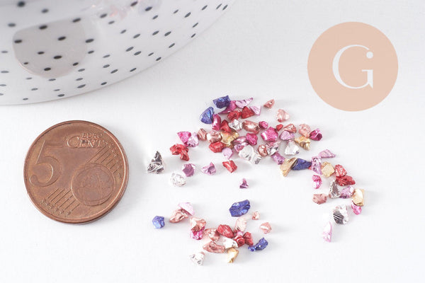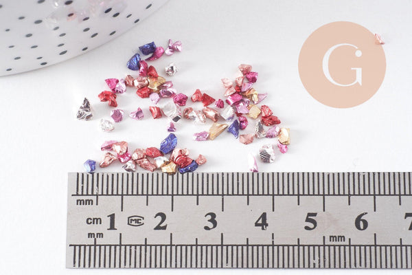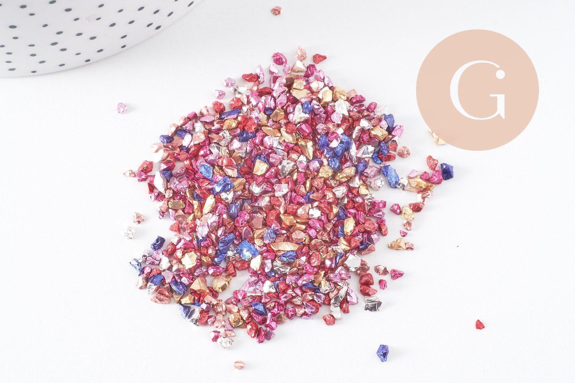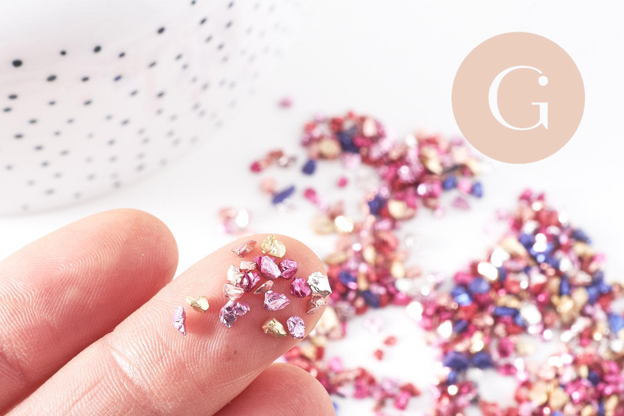 Arena de vidrio coloreada con metal, chips minerales, vidrio coloreado, vidrio dorado, piedra de vidrio , creación de joyas, arena para acuarios, 2-3 mm, bolsa de 10 gramos