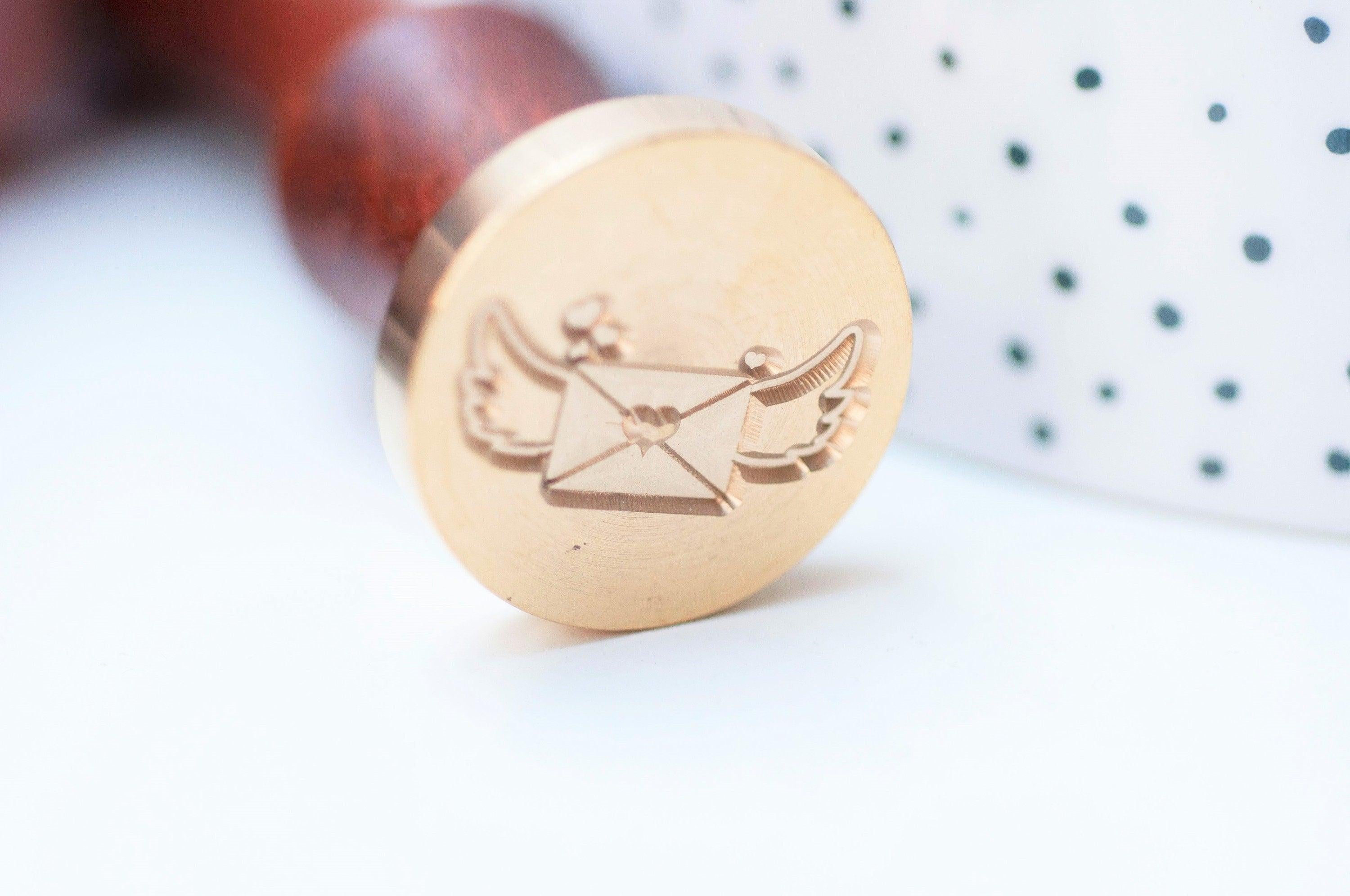 Sceau metal enveloppe ailée cire à cacheter,fourniture pour création sceaux personnalisés, invitation de mariage DIY,25mm x1 G4725