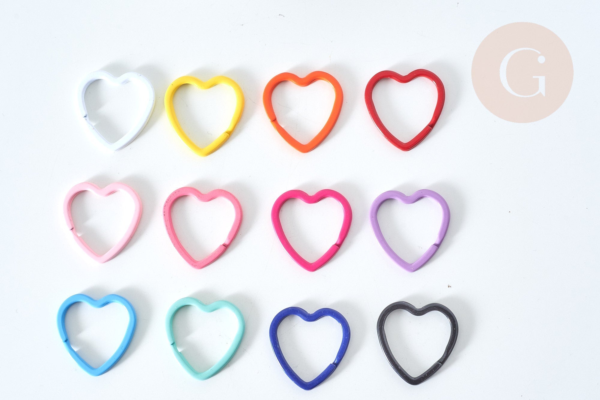 Crea bonitos y elegantes accesorios para llaves o bolsos con el llavero con forma de corazón de hierro multicolor en el color que elijas.