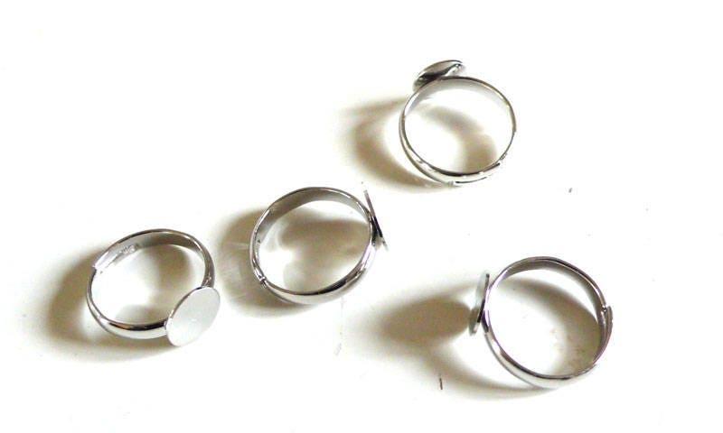 Un conjunto de 4 pequeños soportes para anillos ajustables en color platino , para crear tus propios anillos: joyas personalizadas y únicas;