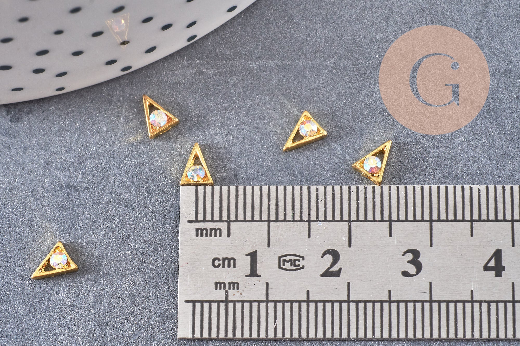 Triangle à coller zamac doré et zircon AB 5.5x4mm, x2 (G5264)