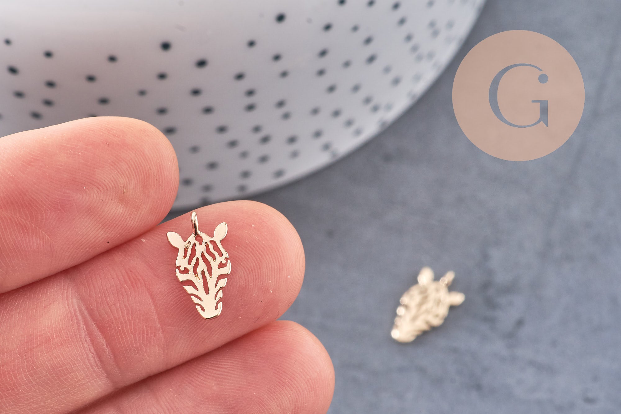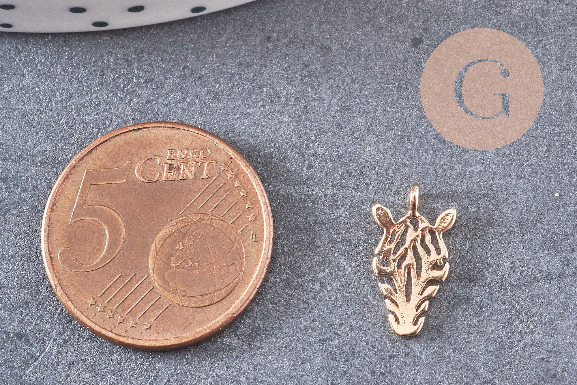Para realizar magníficos collares, pendientes y pulseras, adopte este colgante en forma de cabeza de cebra, de latón bañado en oro.
