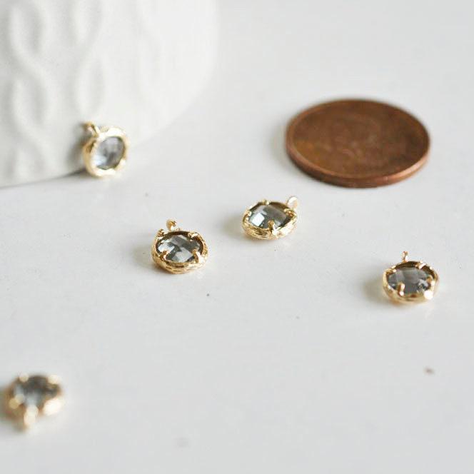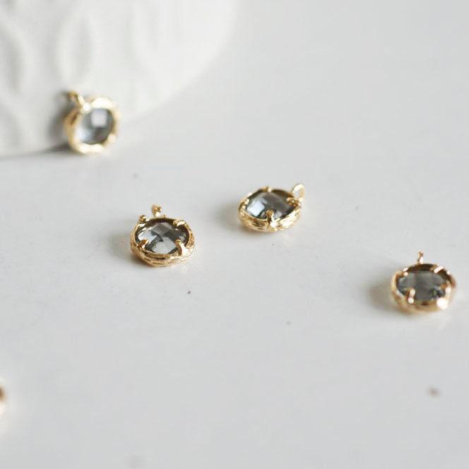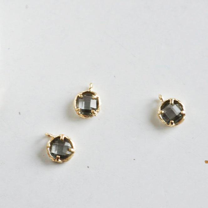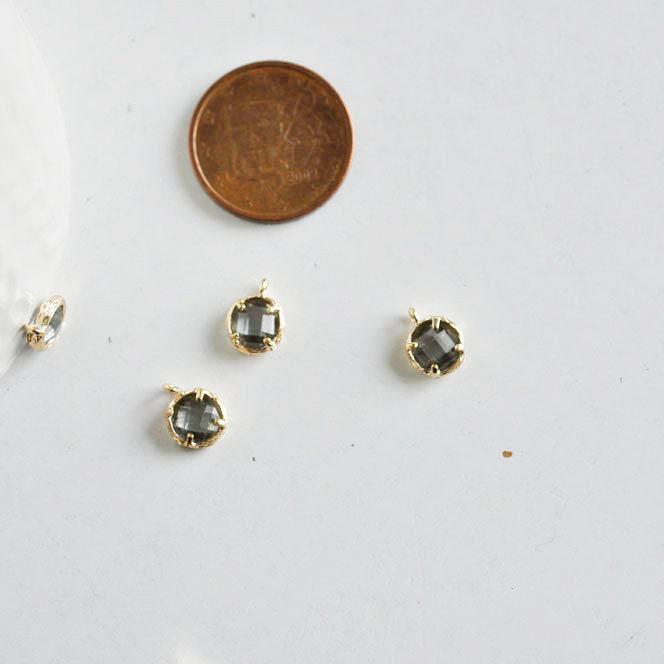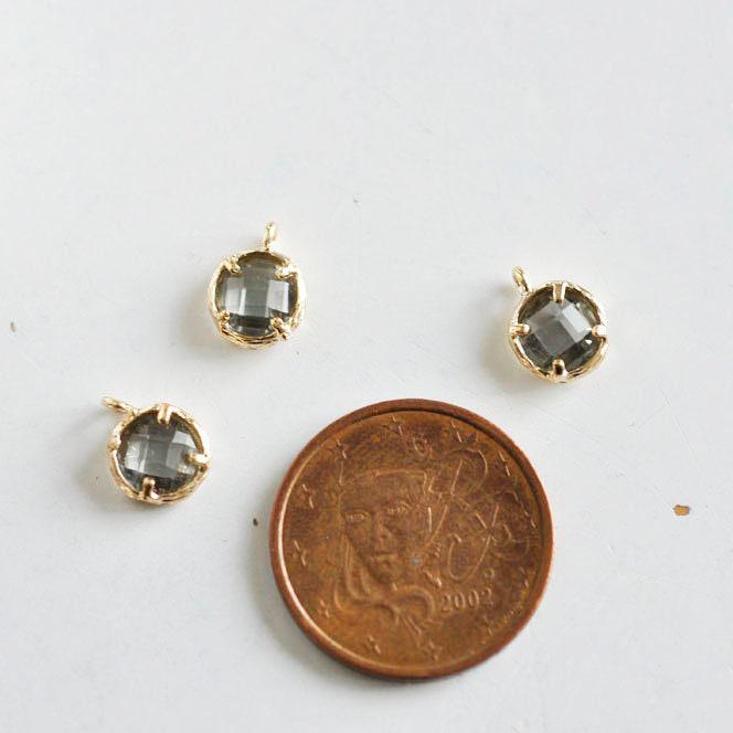 EP 24k gold plated round pendant grey crystal 10mm, x1 G0968