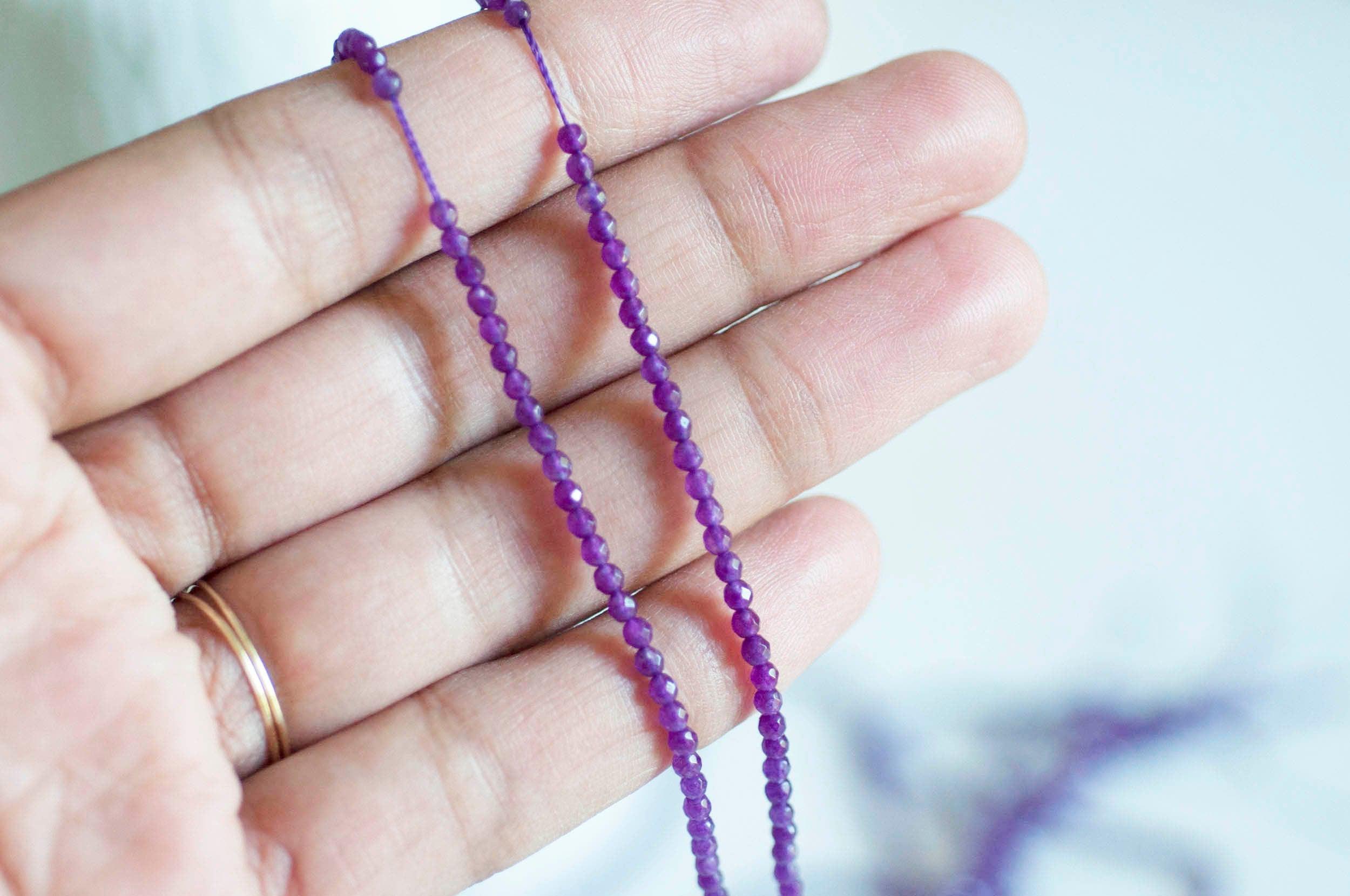 2mm faceted purple jade beads, natural jade, stone bead, creative supplies, gemstone, jewelry beads, 2mm, strand of 180 beads A thread of approximately 180 beads in natural blue jade, tinted and faceted The beads measure 2mm in diameter Hole: 0.5mm...