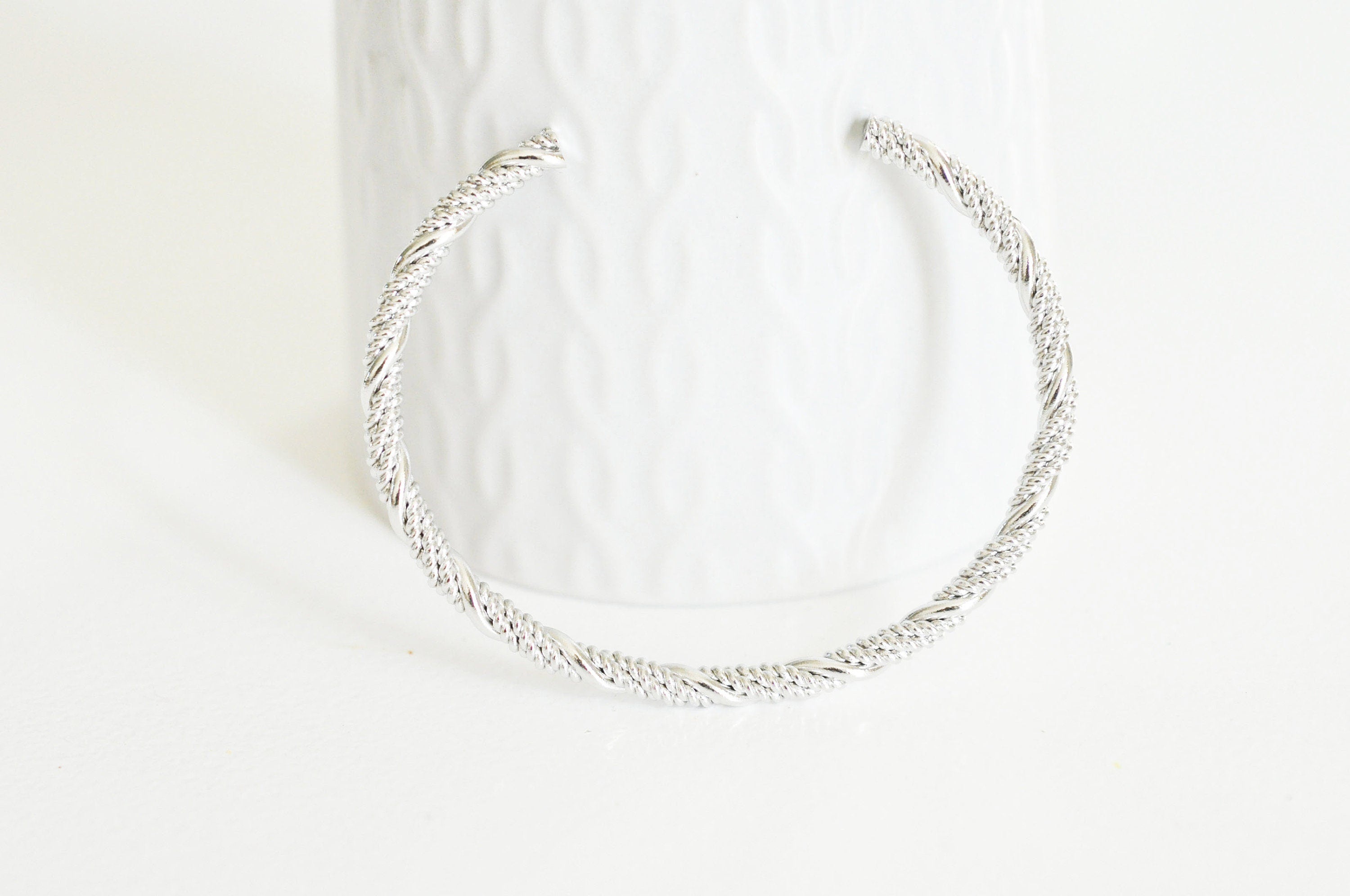 Adjustable braided white gold finish bangle bracelet, rhodium finish, white gold gilding, jewelry making, silver bracelet, 65x55mm For cuff bracelets, here are magnificent braided white gold (rhodium) finish copper supports. Please note: these bracelets are sold without end caps. Width:...