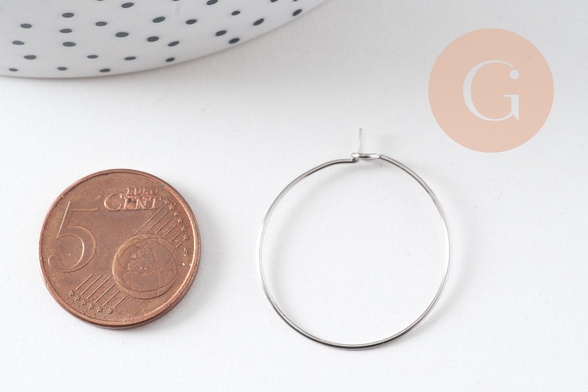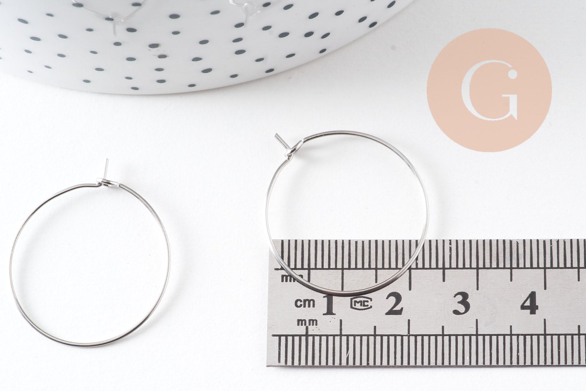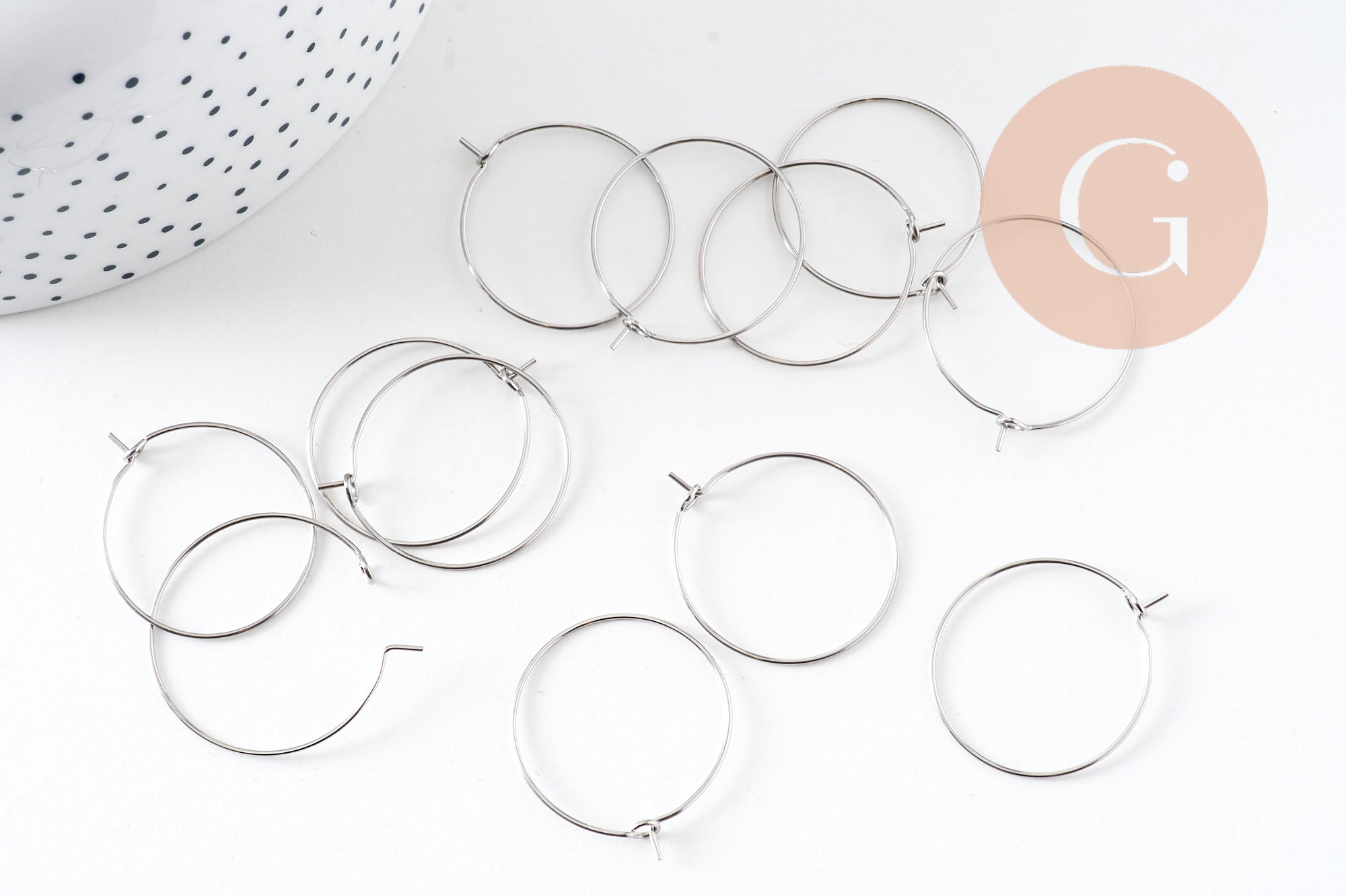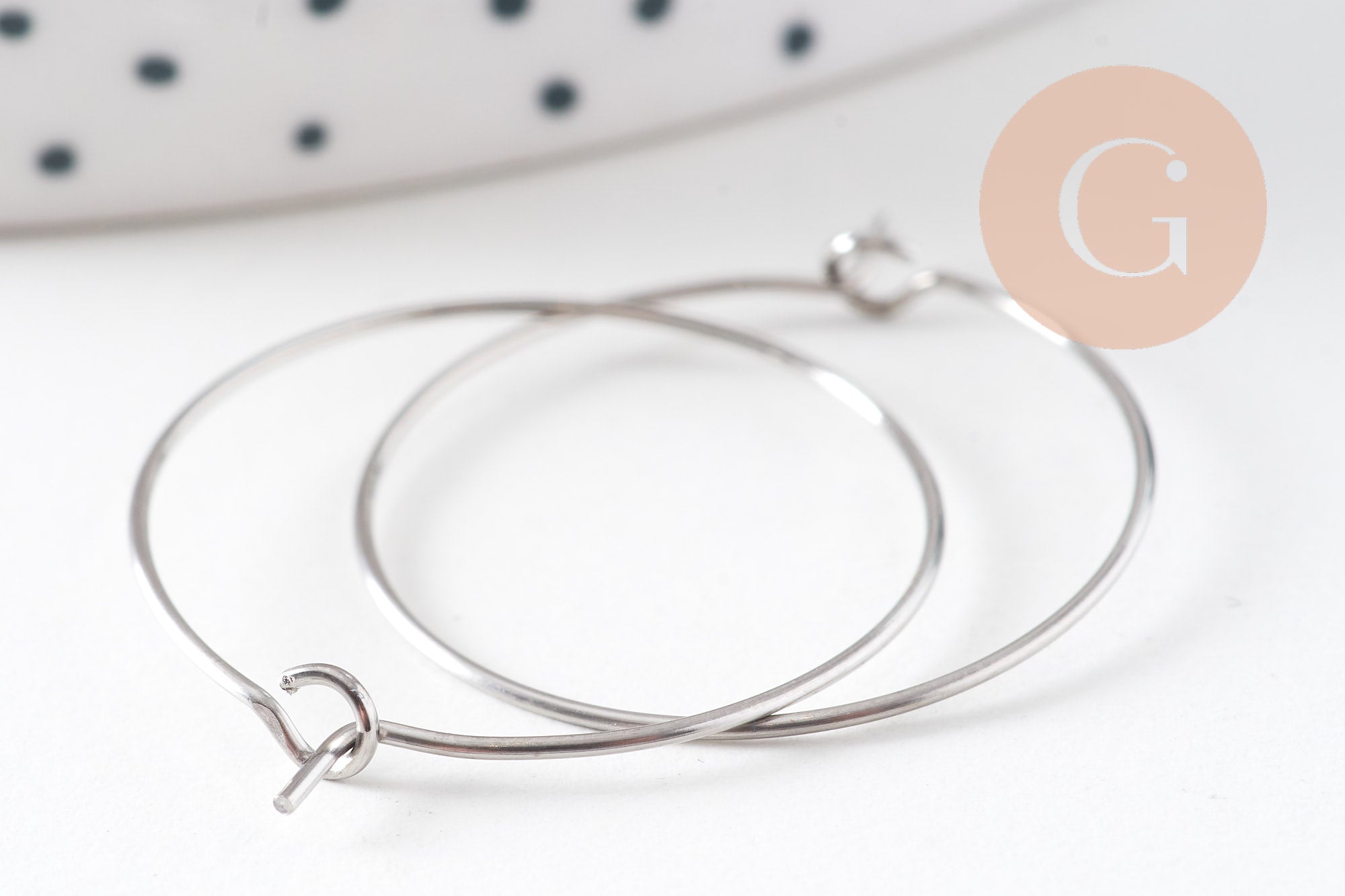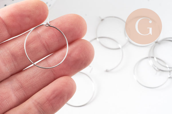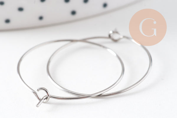 These 25mm platinum-plated stainless steel hoop earrings are perfect for creating elegant and modern earrings. Their platinum finish offers a subtle and timeless shine that will enhance all your DIY creations.