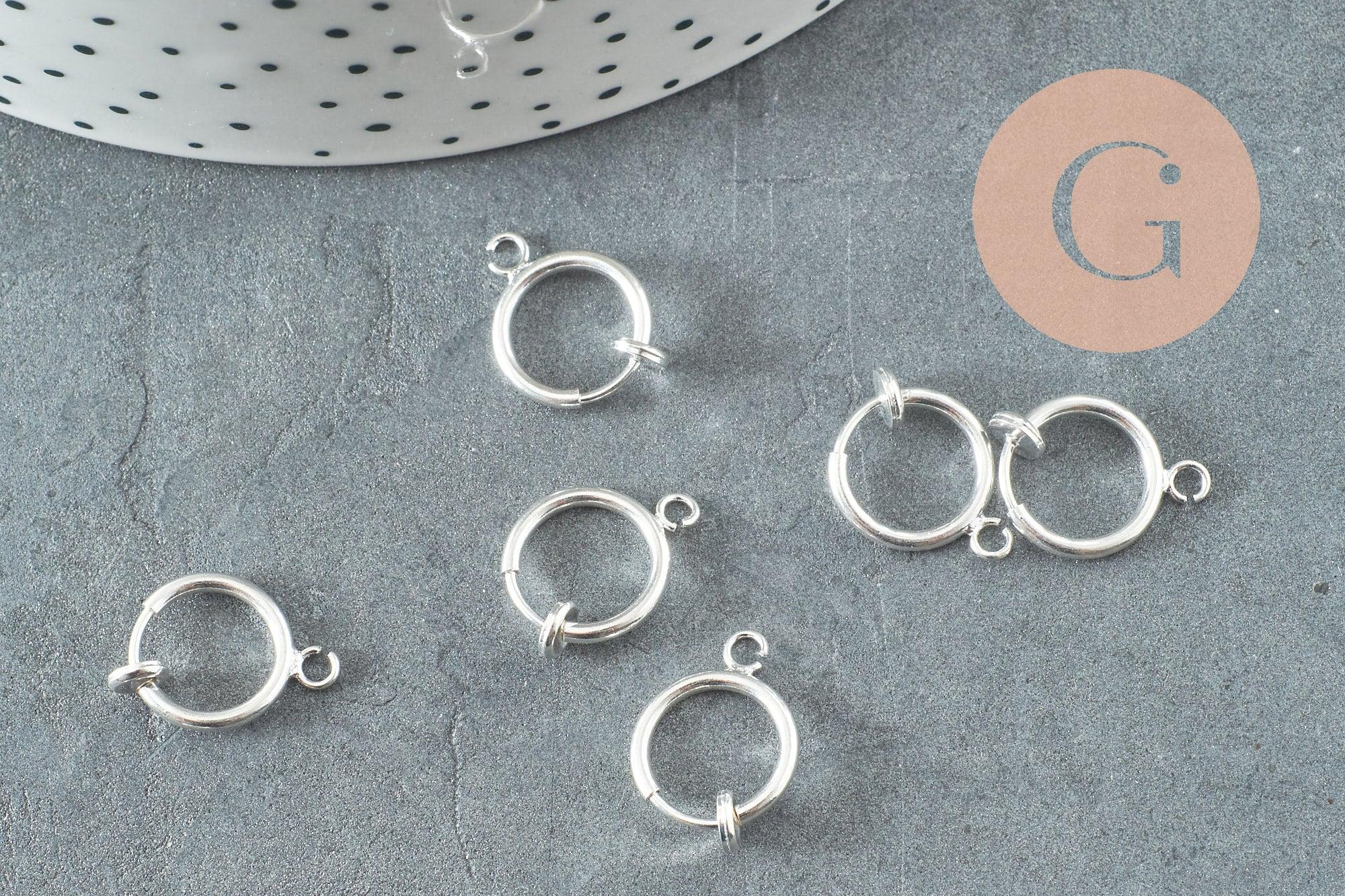 A set of 2 silver-plated brass rings to create your own earrings, for non-pierced ears.